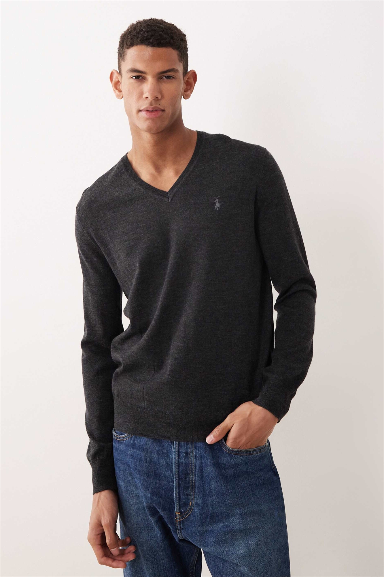 Свитер с V-образным вырезом и логотипом в виде значка из мериносовой шерсти