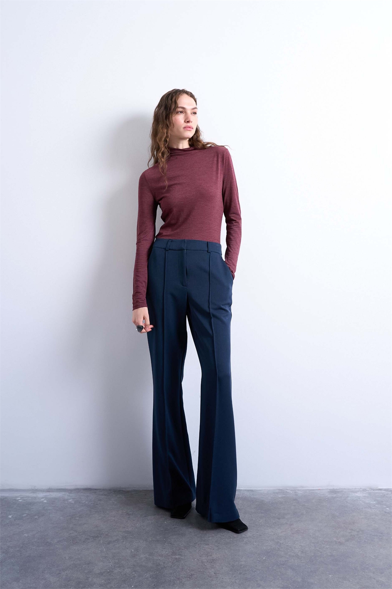 Брюки-клёш с зауженными штанинами, скроенные по фигуре