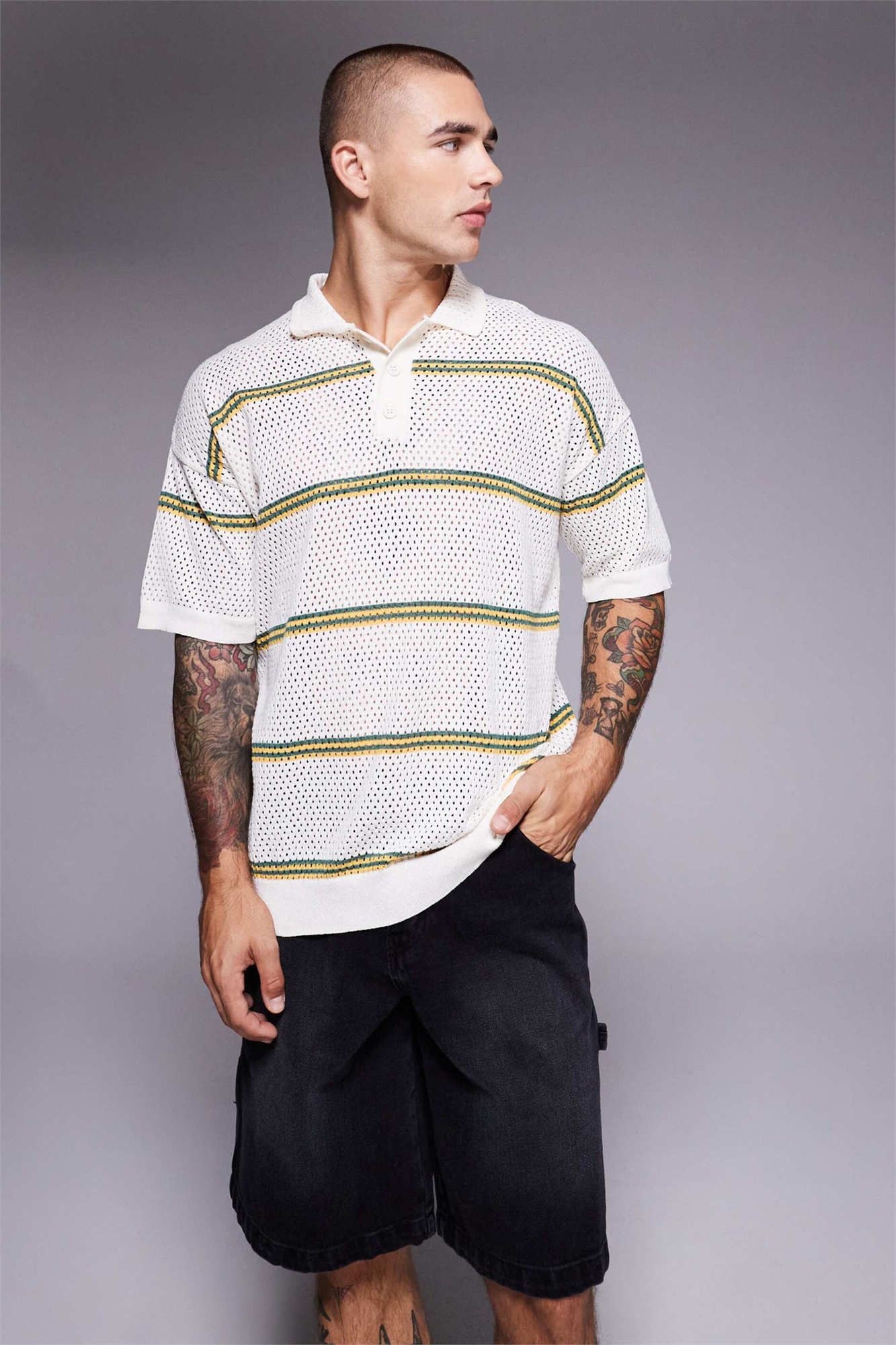 Полурубашка из трикотажа Airtex с полосками свободного кроя