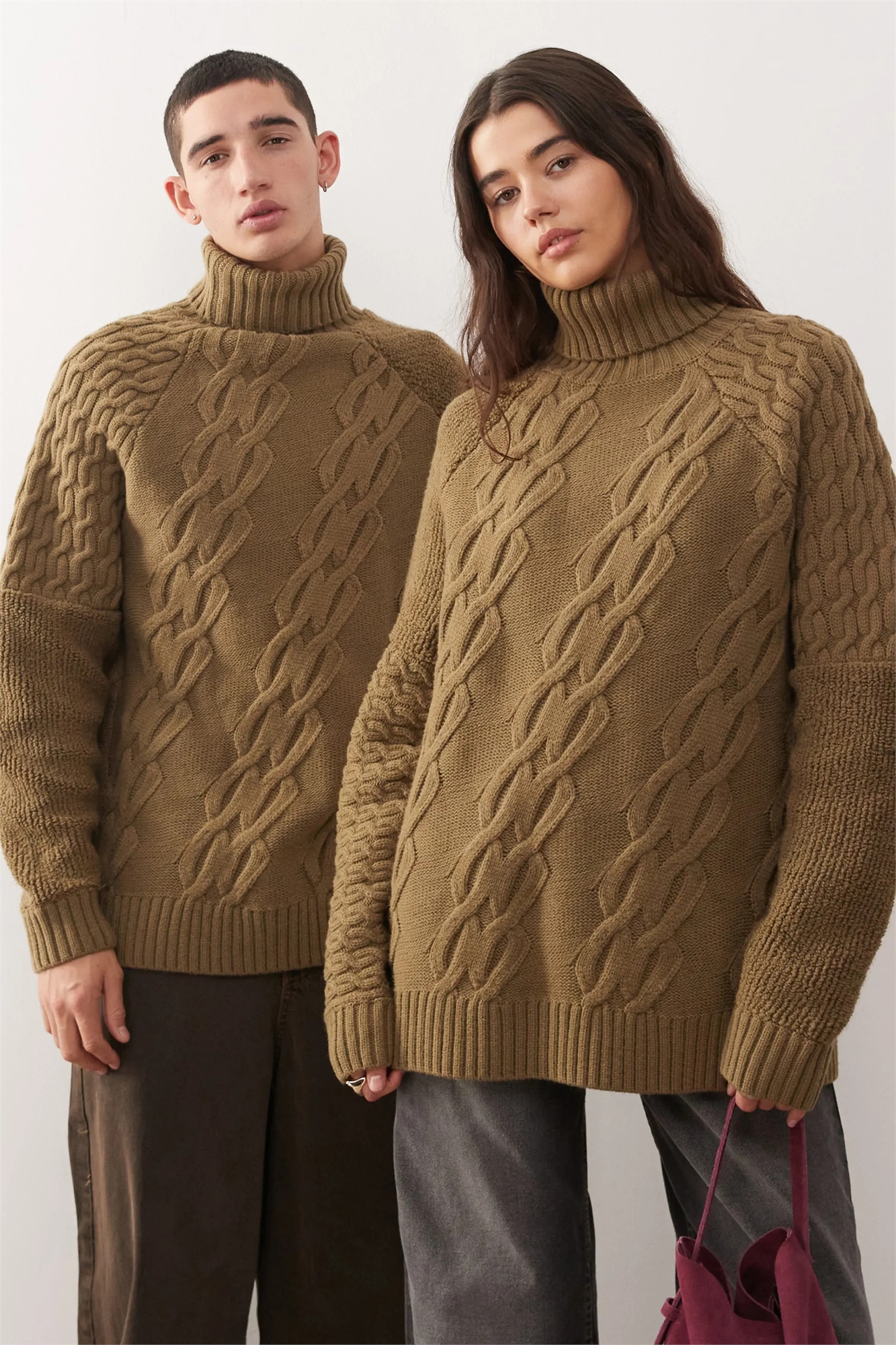Универсальный свитер с высоким воротником, связанный узором «коса»