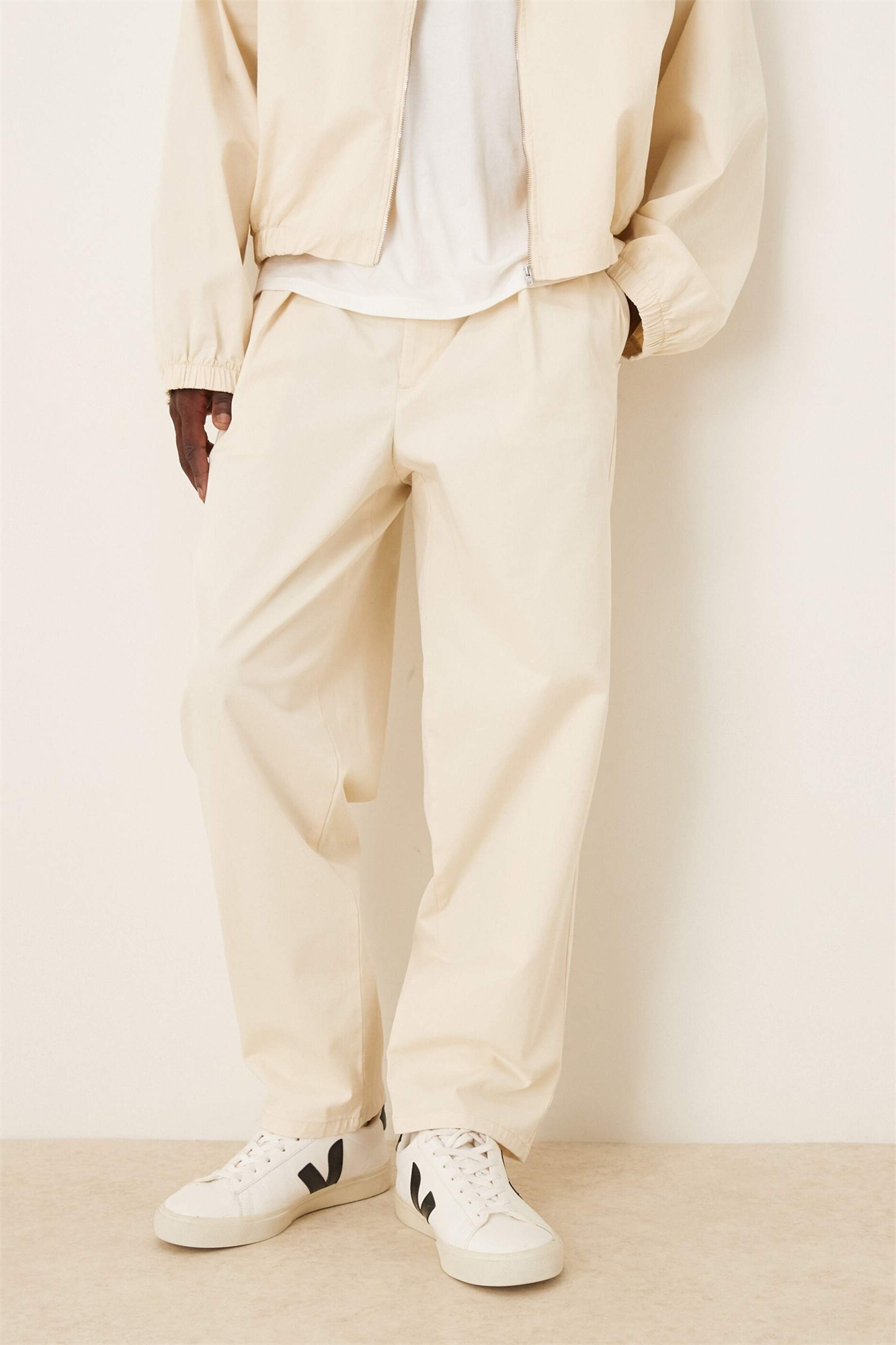 Брюки-клин из коорда с глубокими складками, цвет экрю
