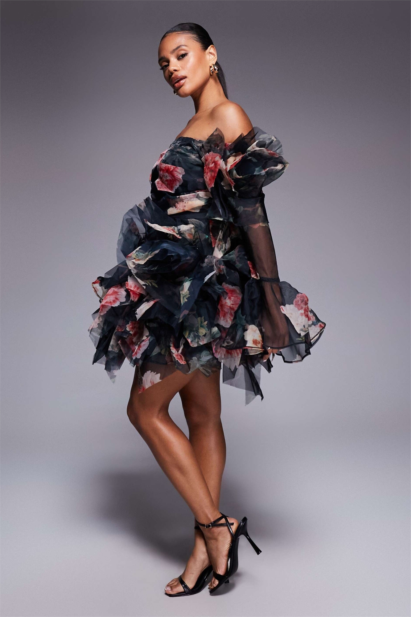 Мини-платье из органзы с открытыми плечами
