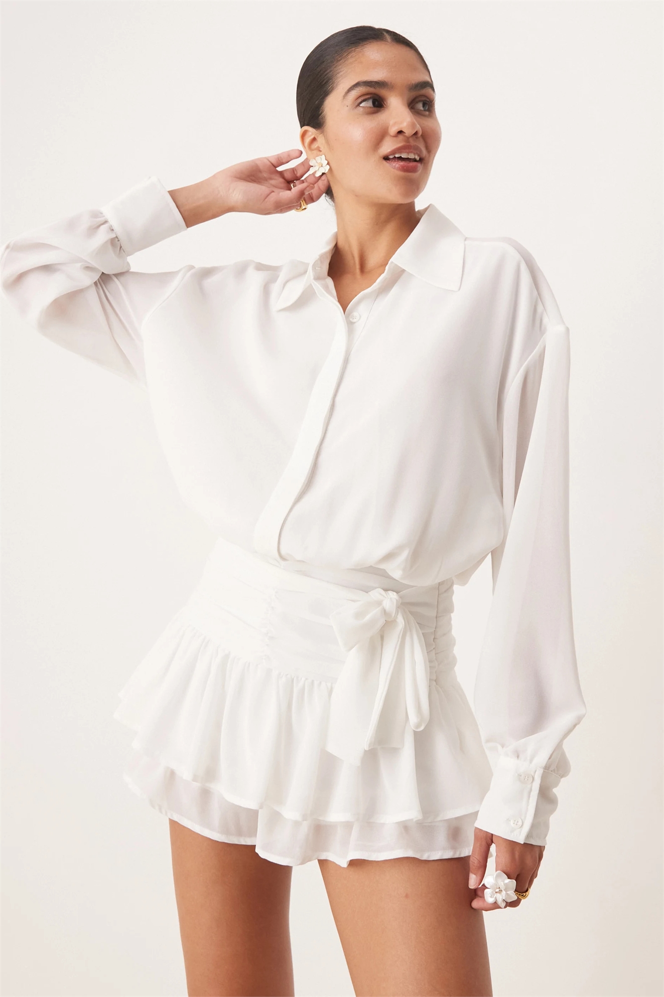 Комбинезон-блумер с прозрачными оборками и рубашечным верхом