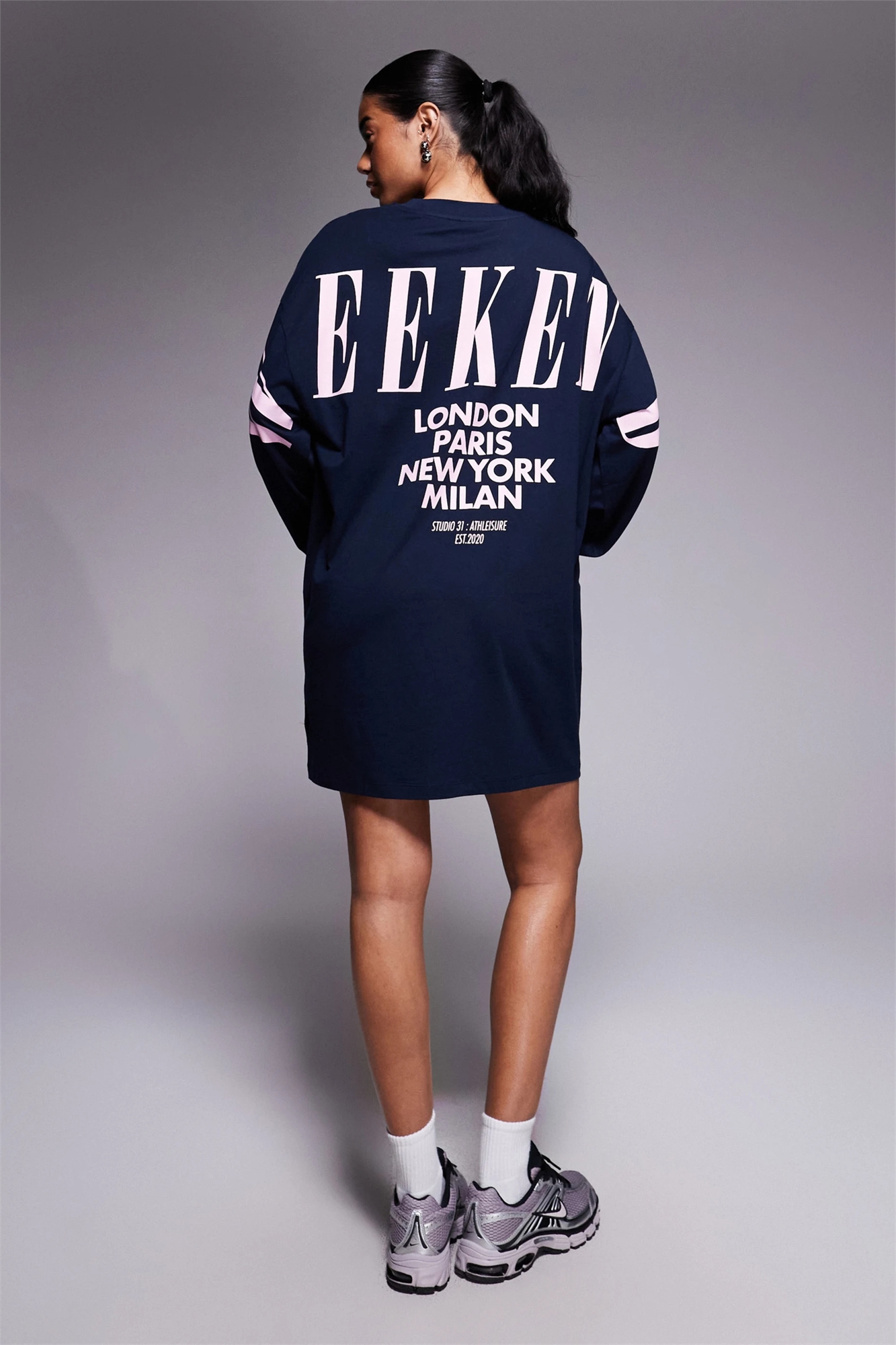 Платье-футболка с длинными рукавами и объемным кроем от Weekend Collective с логотипом на спине
