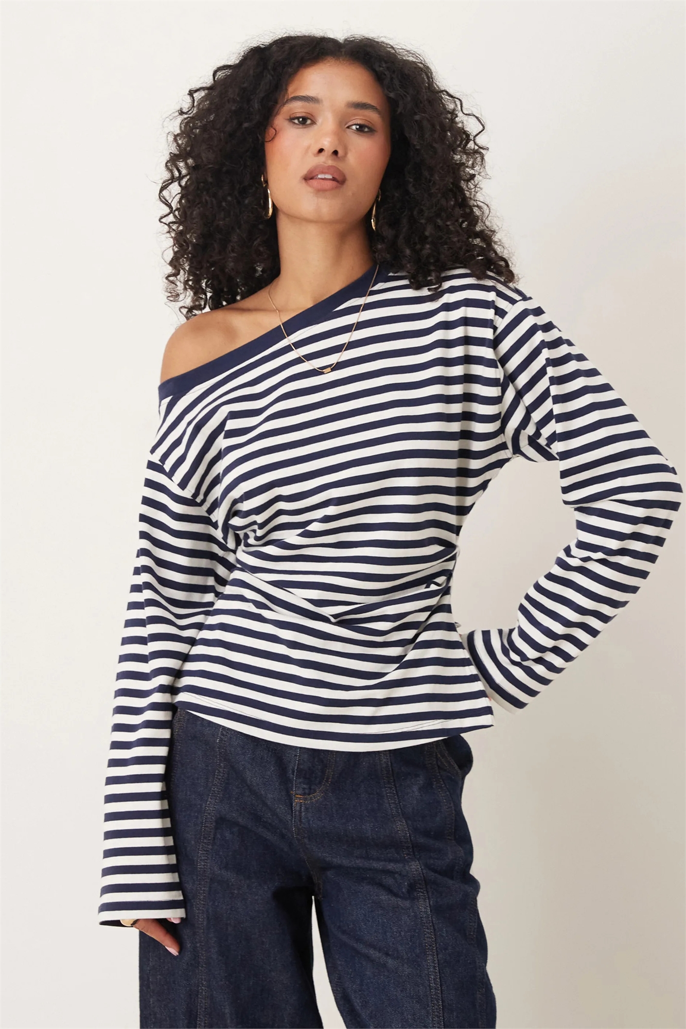 Футболка с длинными рукавами, открытыми плечами и корсетной талией
