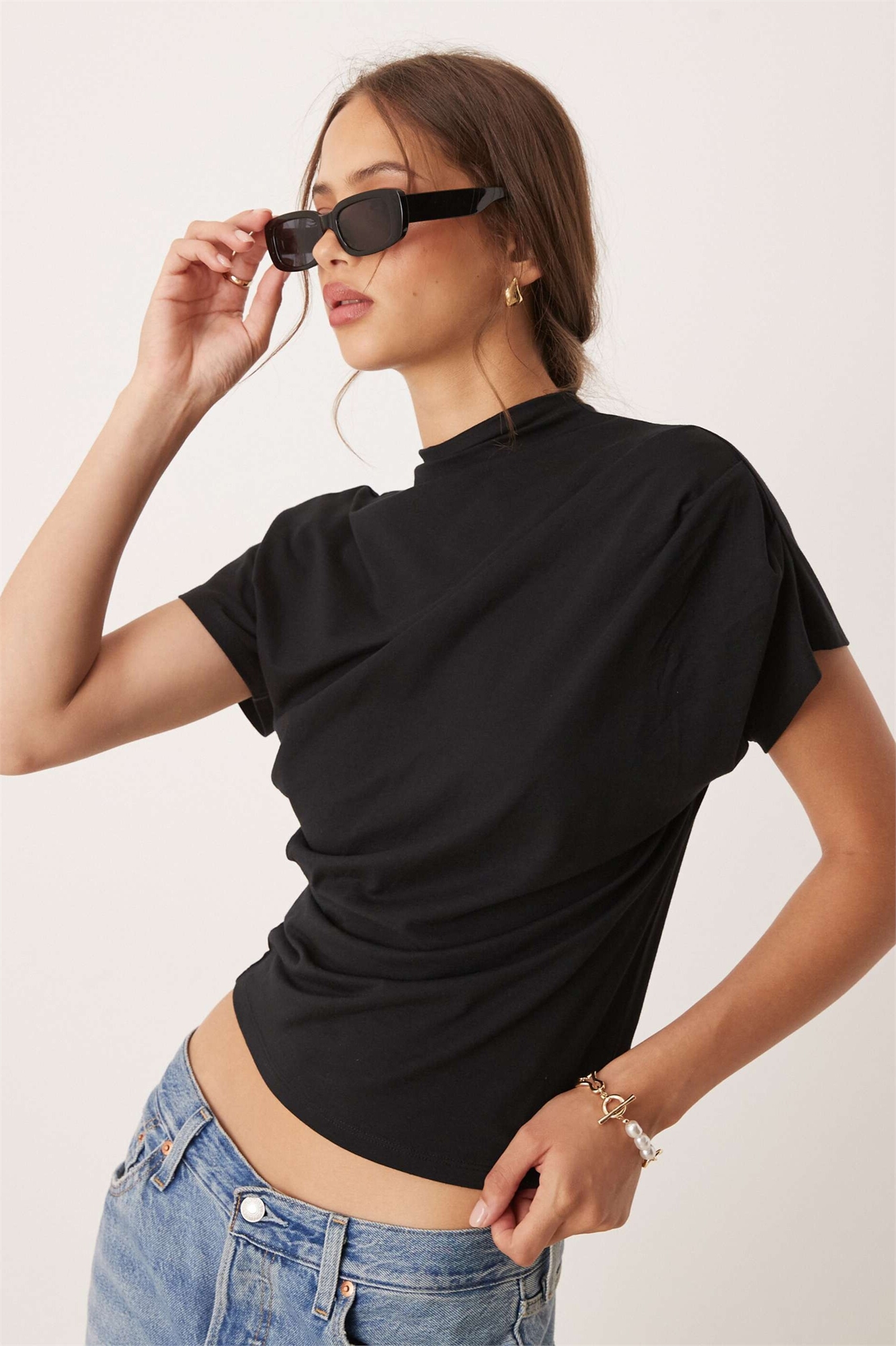 Топ с закрученными плечами и драпировкой