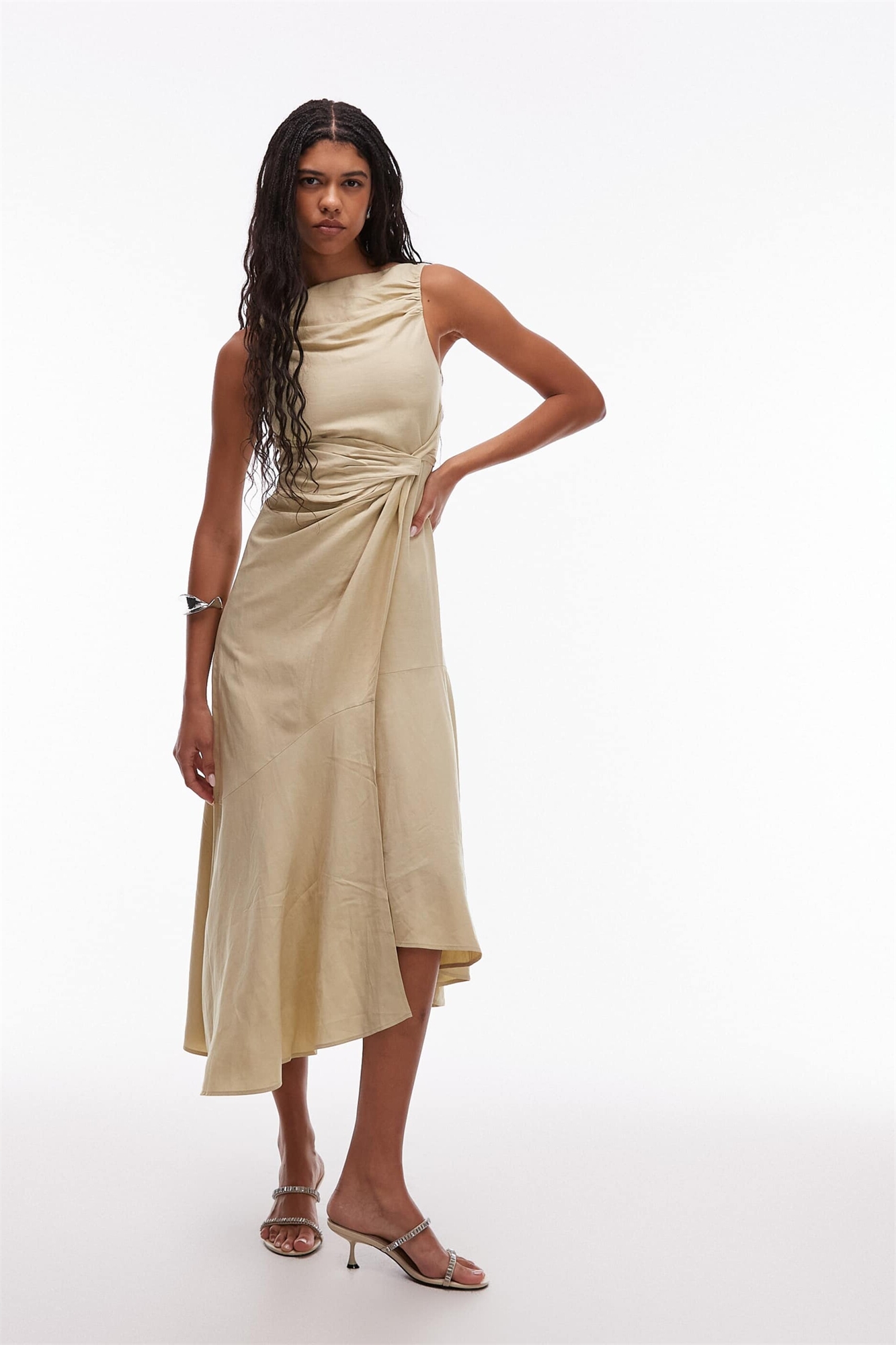 Платье средней длины свободного кроя с асимметричным волнистым подолом