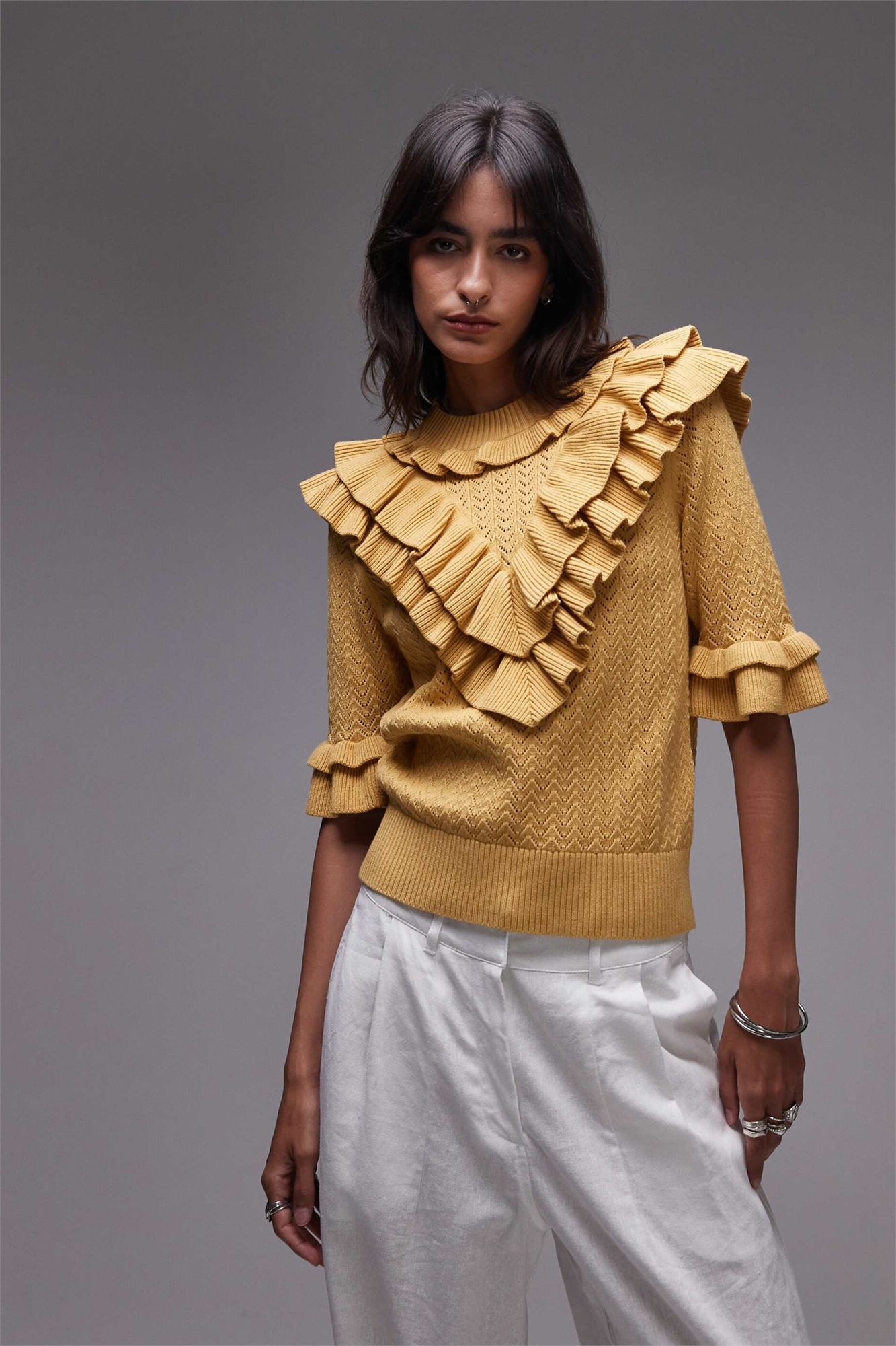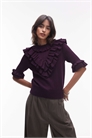 Вязаный свитер с ажурной вязкой и оборками