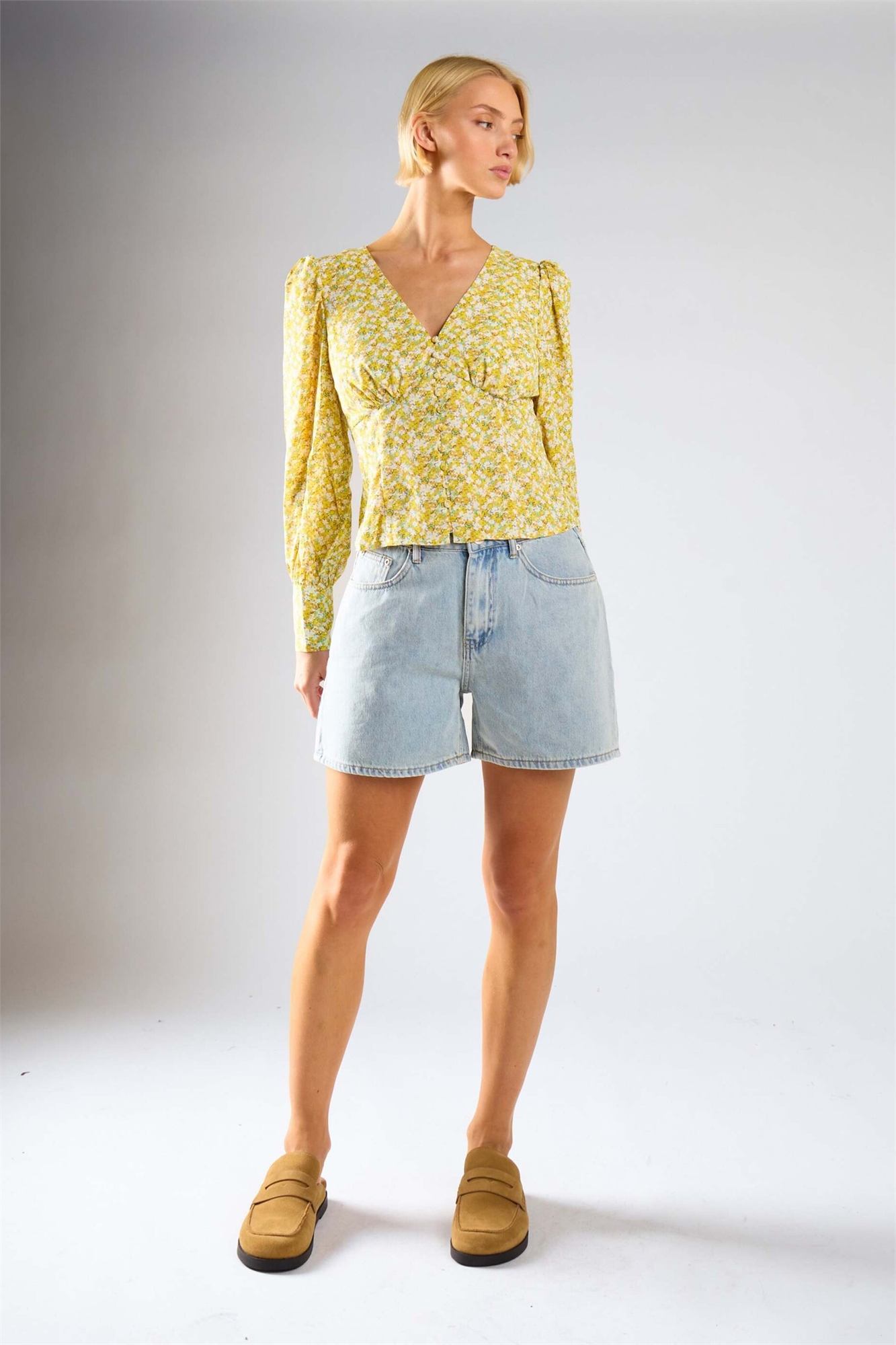 Блузка с V-образным вырезом и застежкой на пуговицах спереди