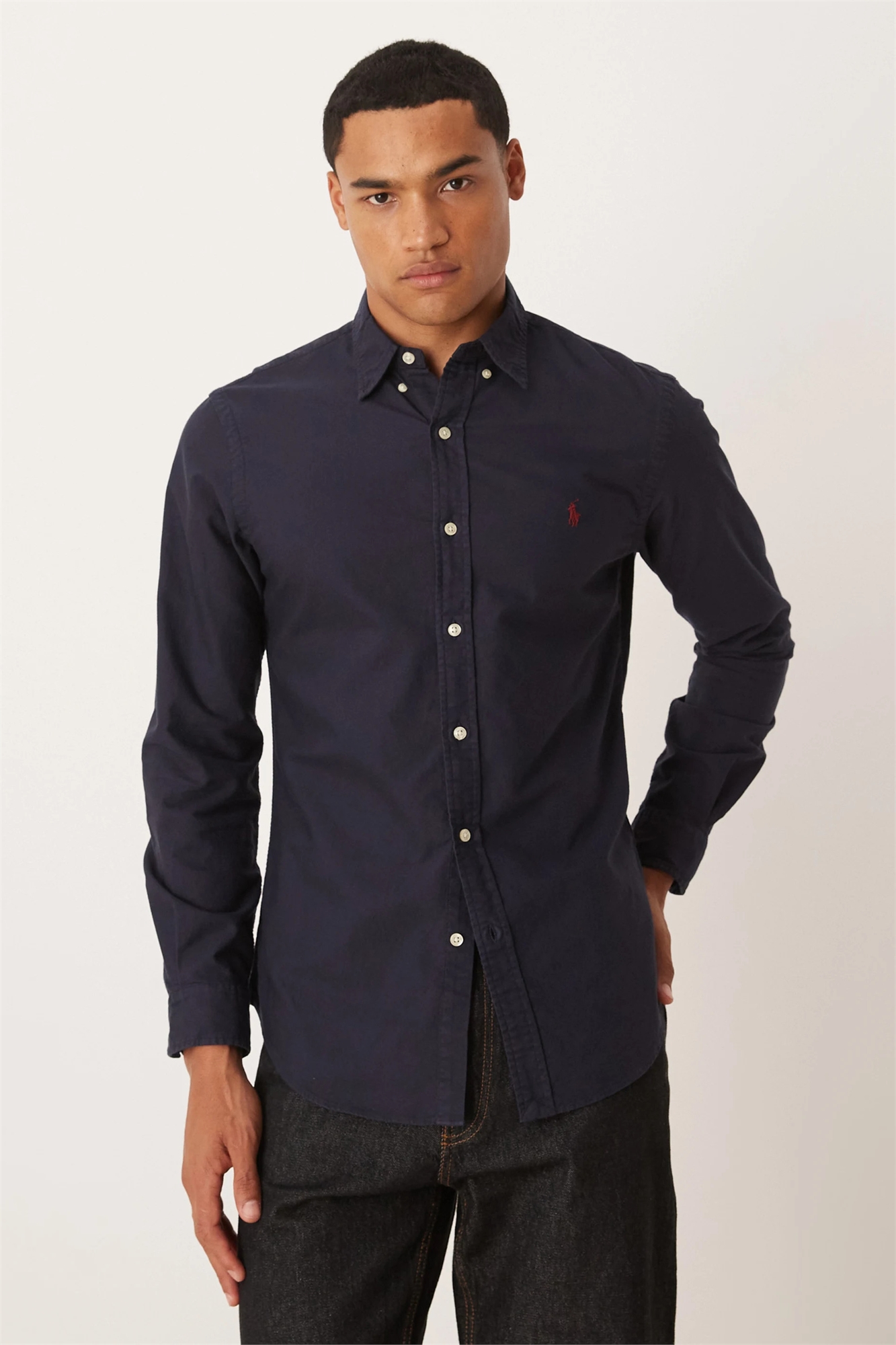 Оксфорд с логотипом в виде значка, приталенный крой, окрашенный в массе