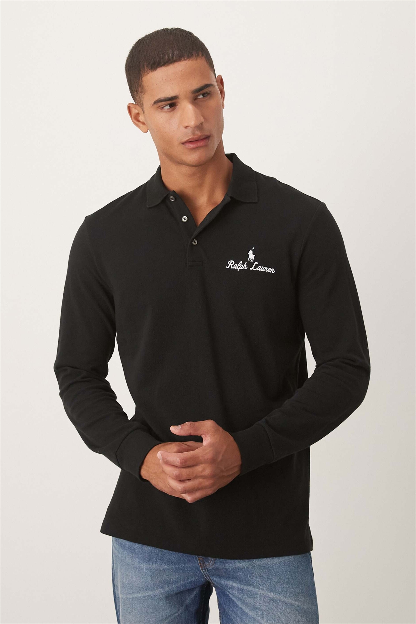 Логотип в виде значка «Script», поло с длинным рукавом из пике, классический крой, свободный фасон