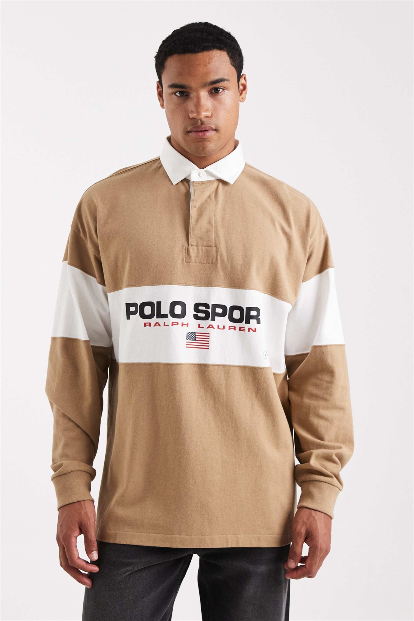 Поло для регби с логотипом на груди в виде флага, свободный крой