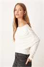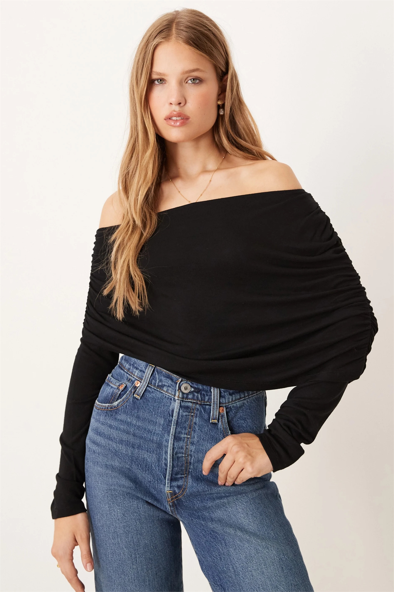Топ с длинными рукавами, скошенными плечами и драпировкой