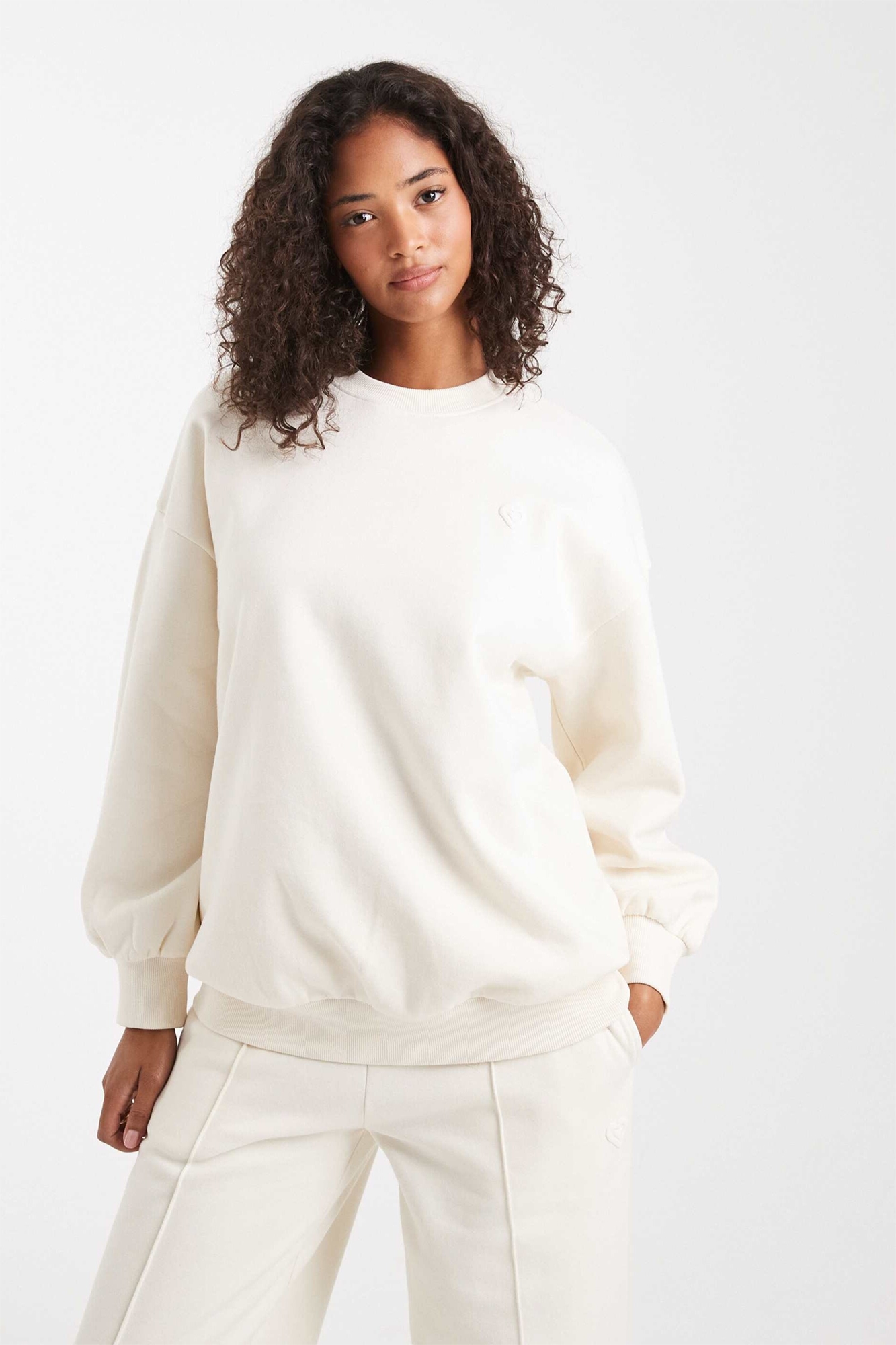 Ткань свитшота: мягкая и теплая ткань с уютной рельефной текстурой внутри. Основная часть: 60% хлопок, 40% полиэстер, ребристая часть: 57% хлопок, 40% полиэстер, 3% эластан.