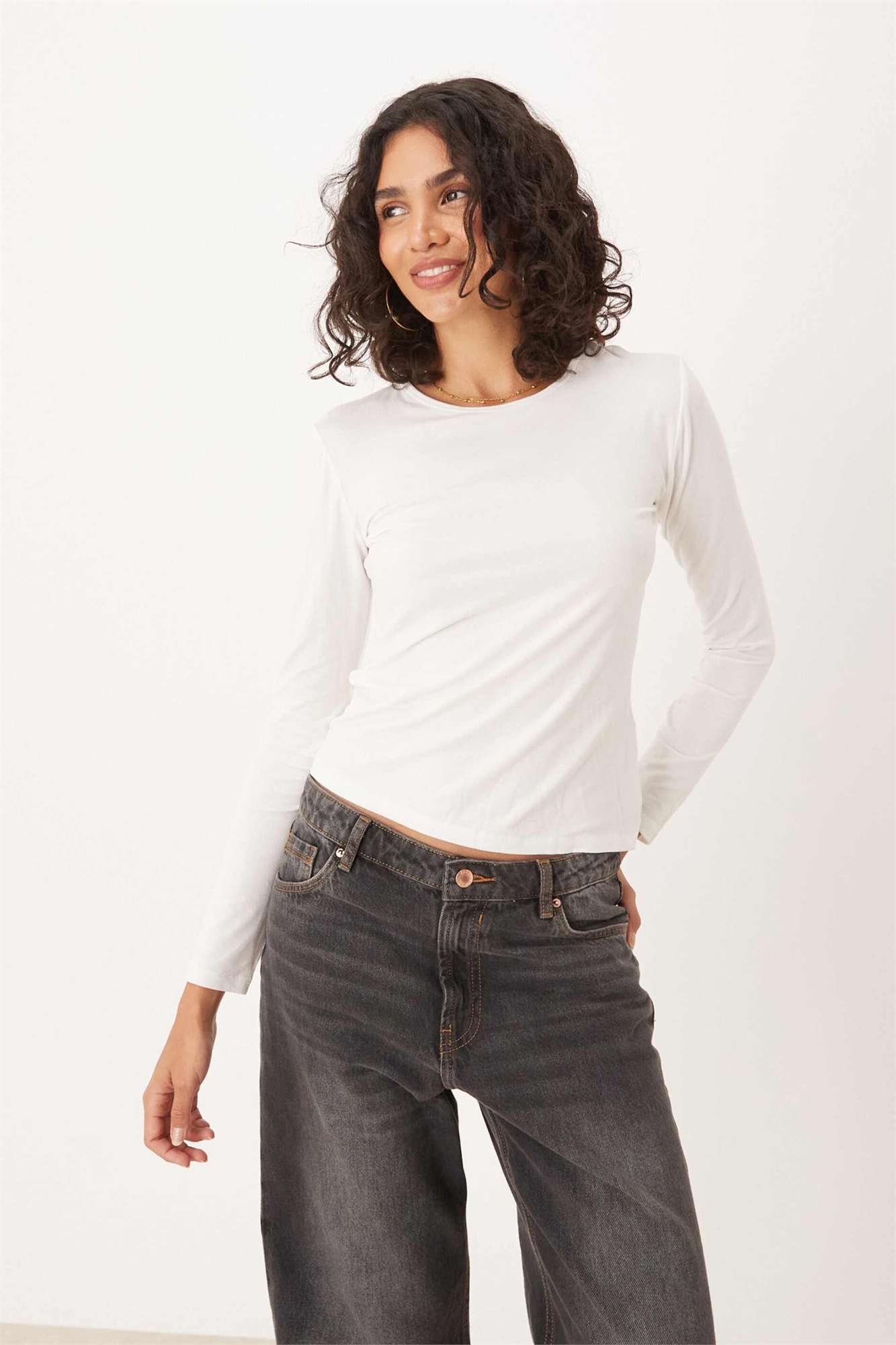 Топ с круглым вырезом и длинными рукавами