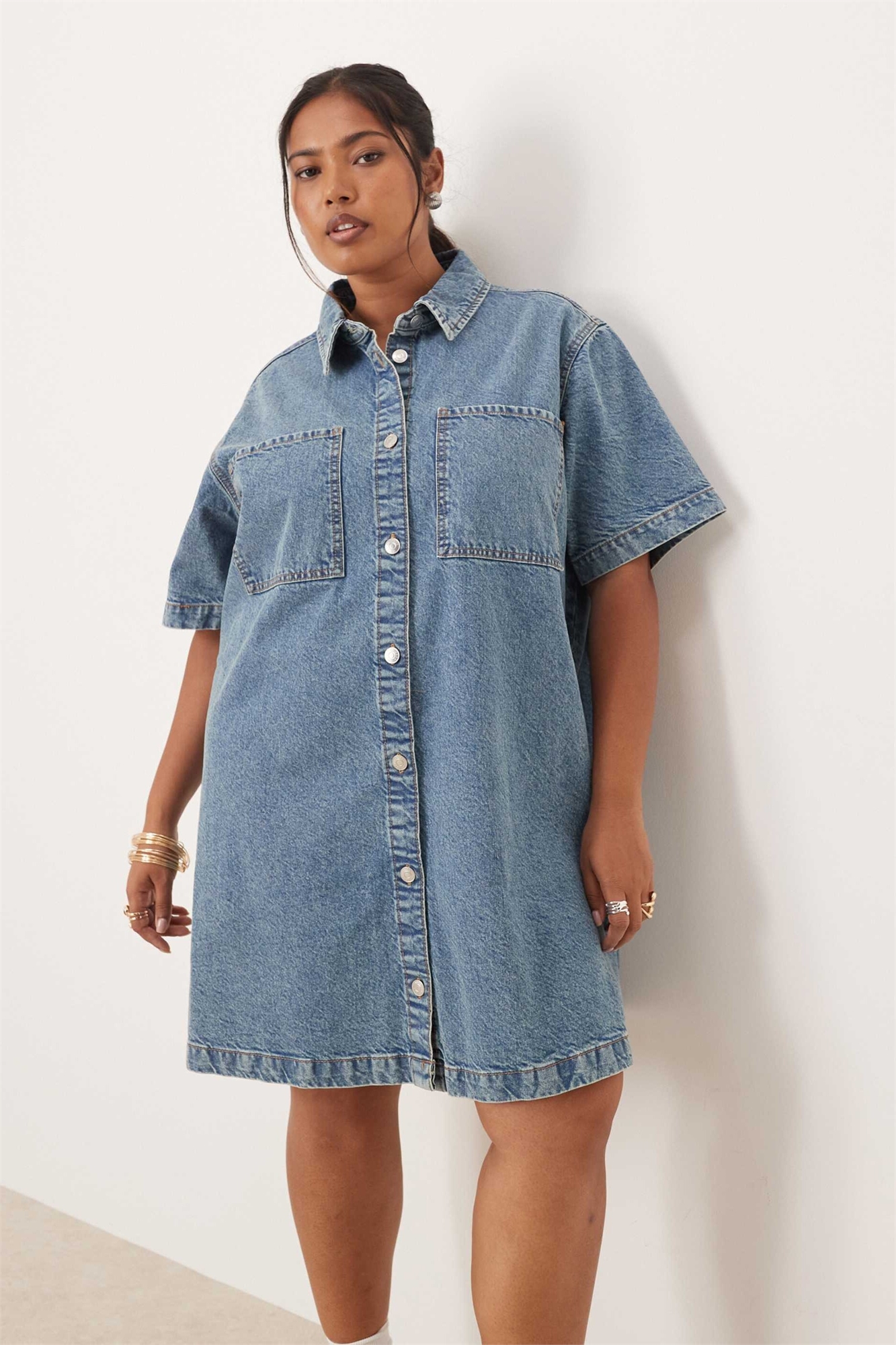 ASOS DESIGN Curve — джинсовое платье-рубашка с короткими рукавами