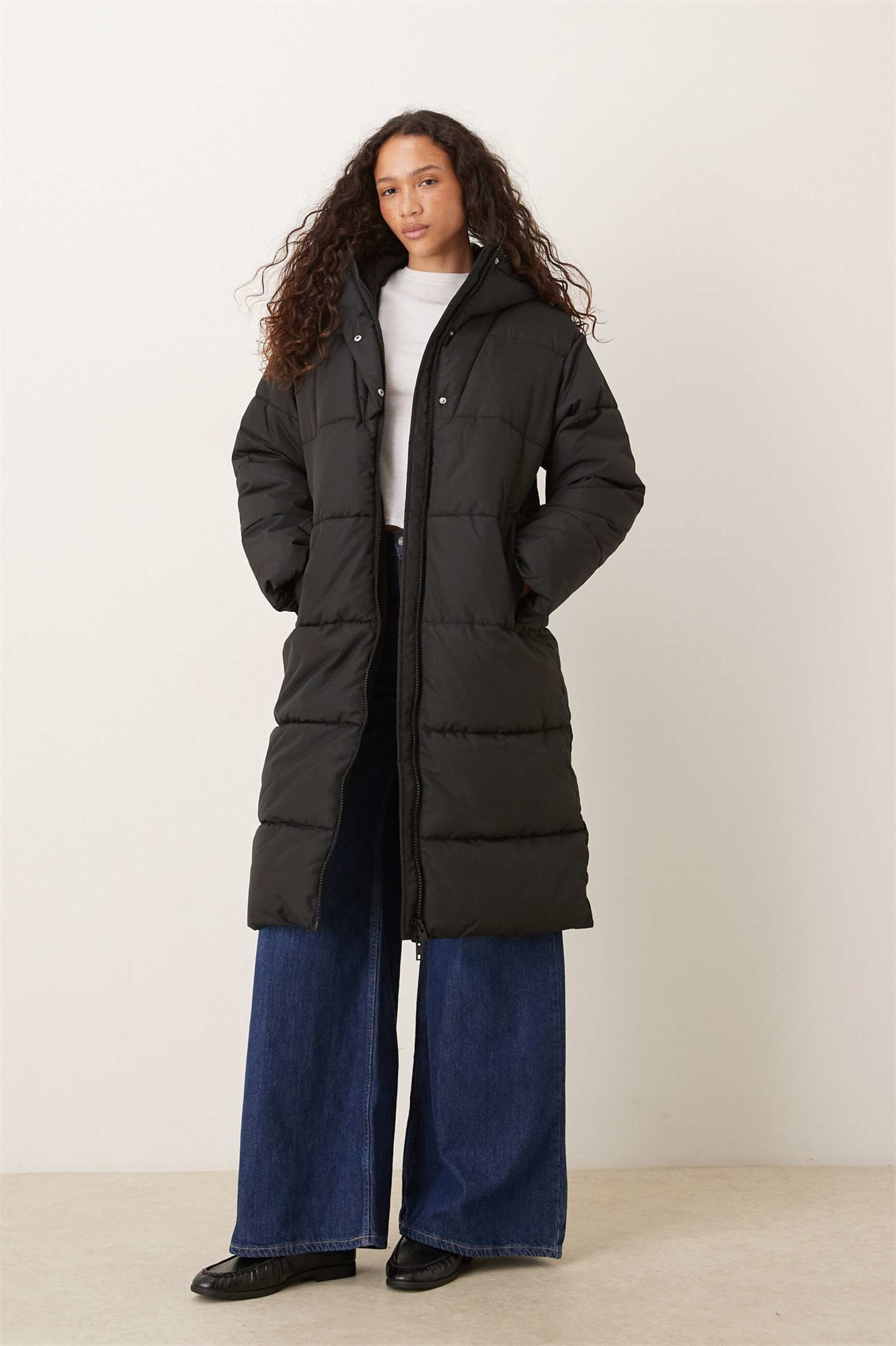 Длинная пуховик с капюшоном