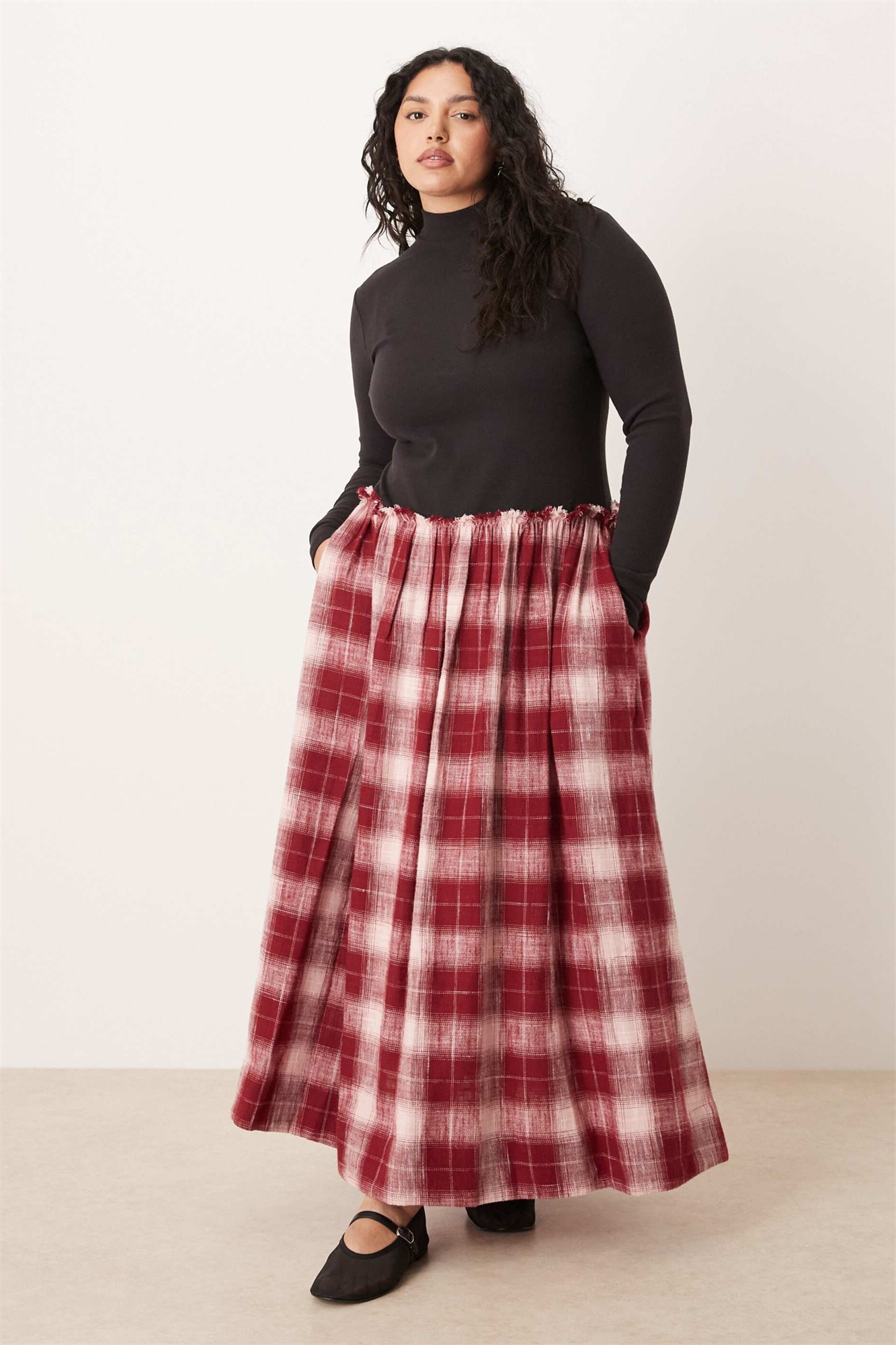 ASOS DESIGN — гибридное макси-платье с высоким воротником и длинными рукавами для полных