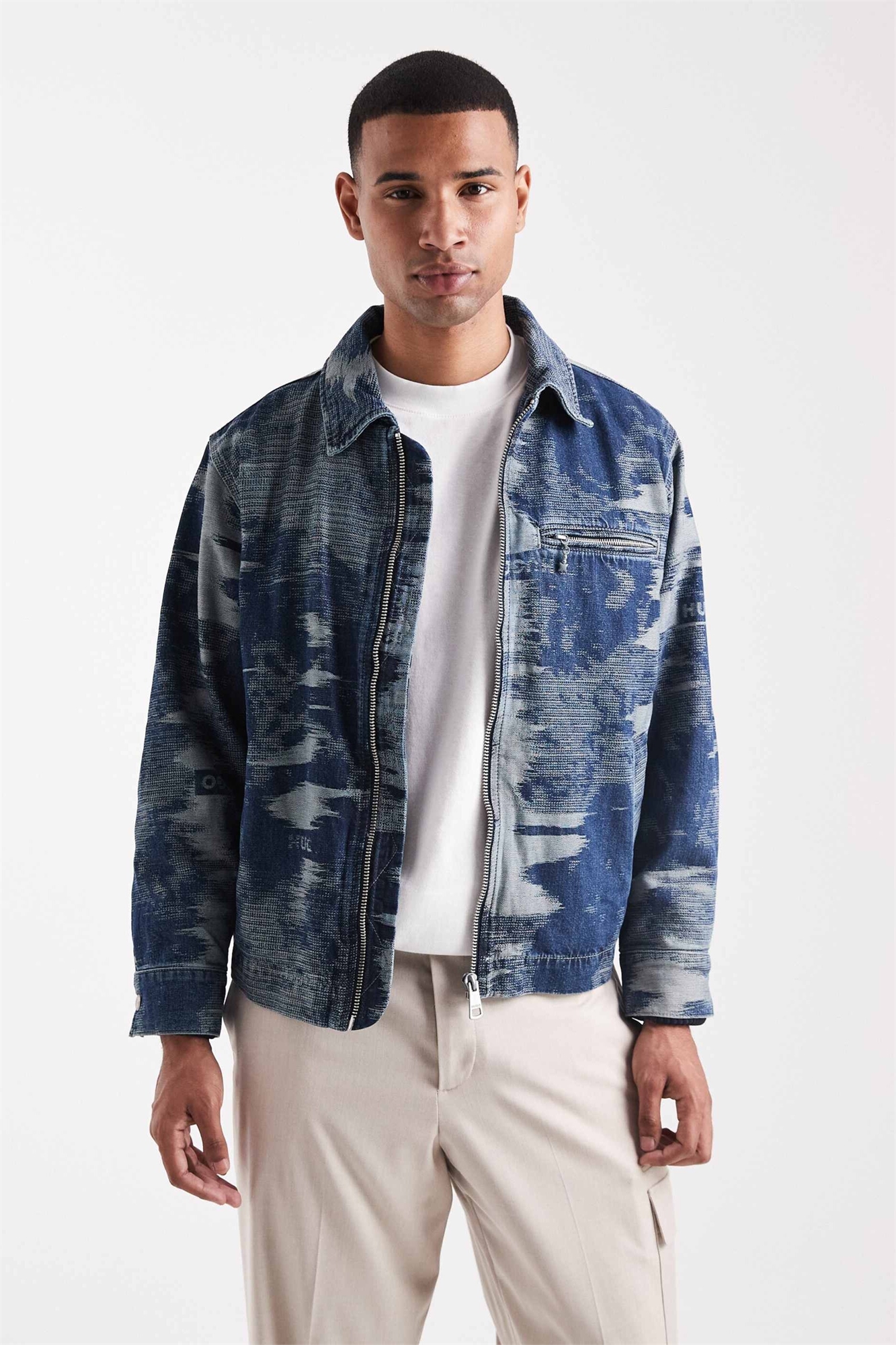 Джинсовая куртка Wylie с застежкой-молнией спереди, камуфляжный индиго, средне-синий оттенок