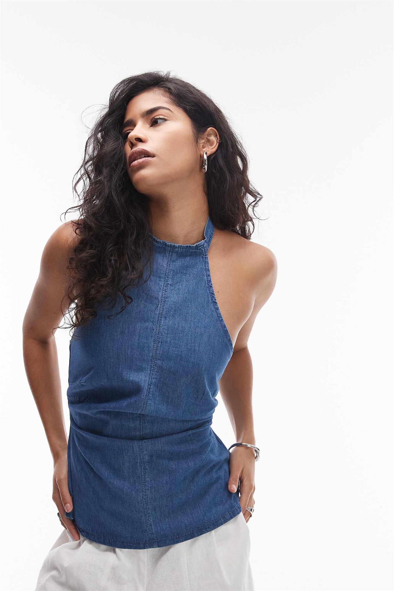 Топ-халтер из денима с баской