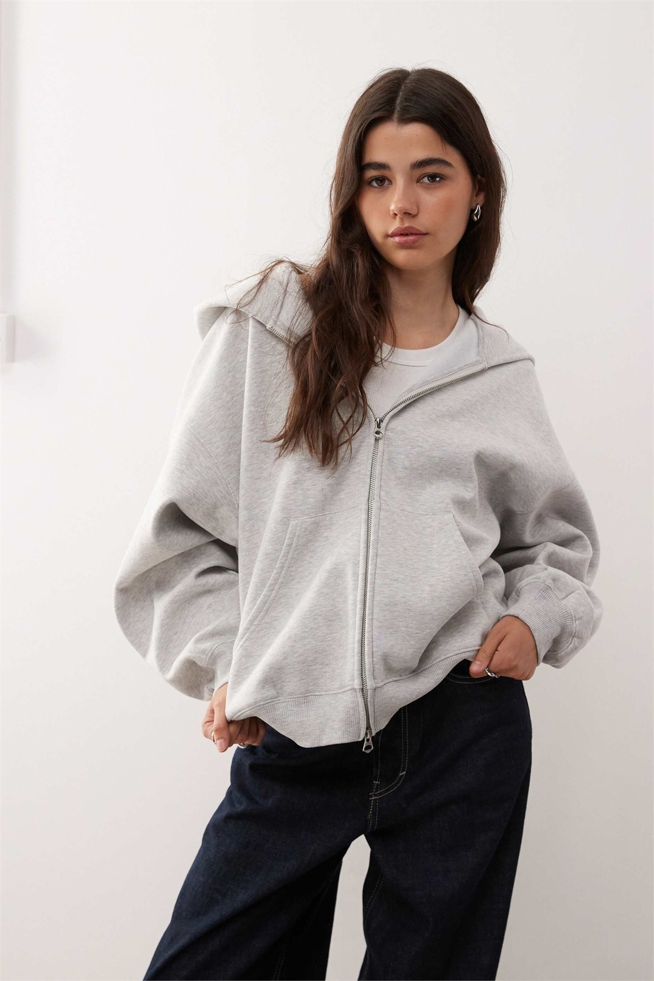 Увеличенная толстовка из джерси с капюшоном и молнией по всей длине