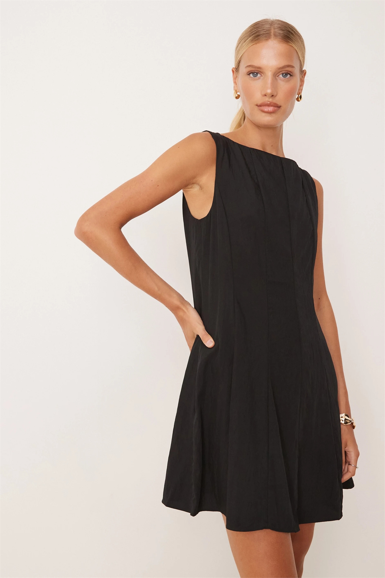 Мини-платье приталенного кроя с расклешенной юбкой
