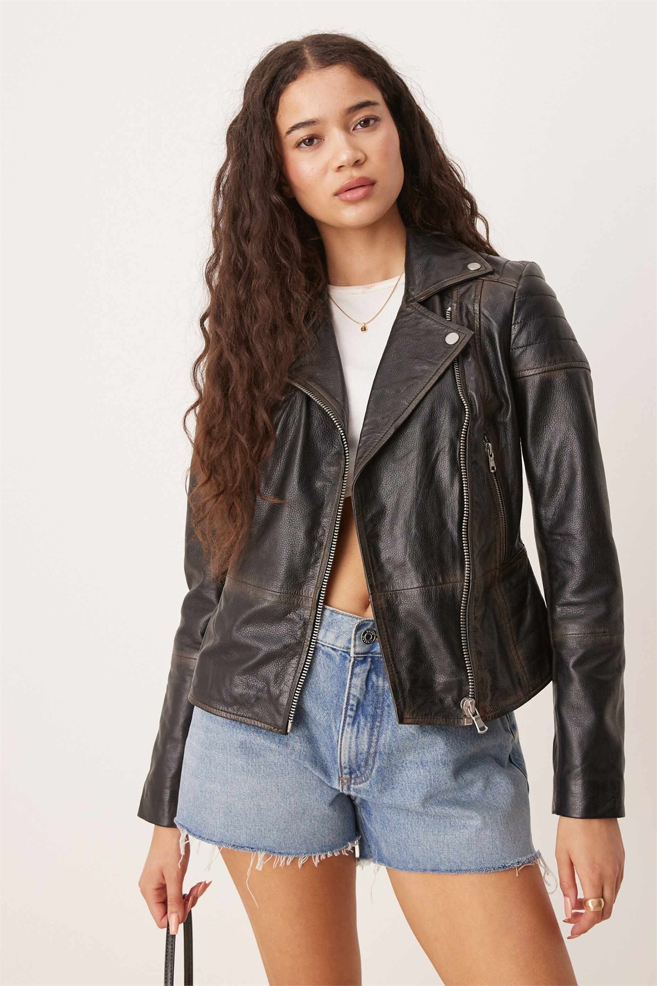 Поношенная кожаная байкерская куртка Barney's Originals