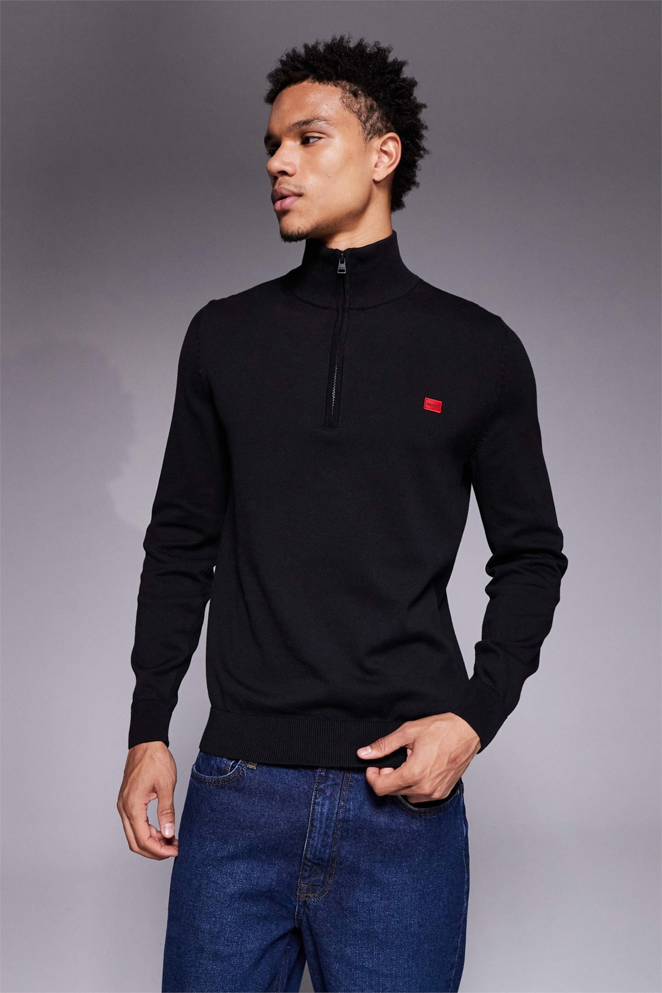 Свитер из трикотажа с логотипом бренда San Quintus и полузастежкой-молнией