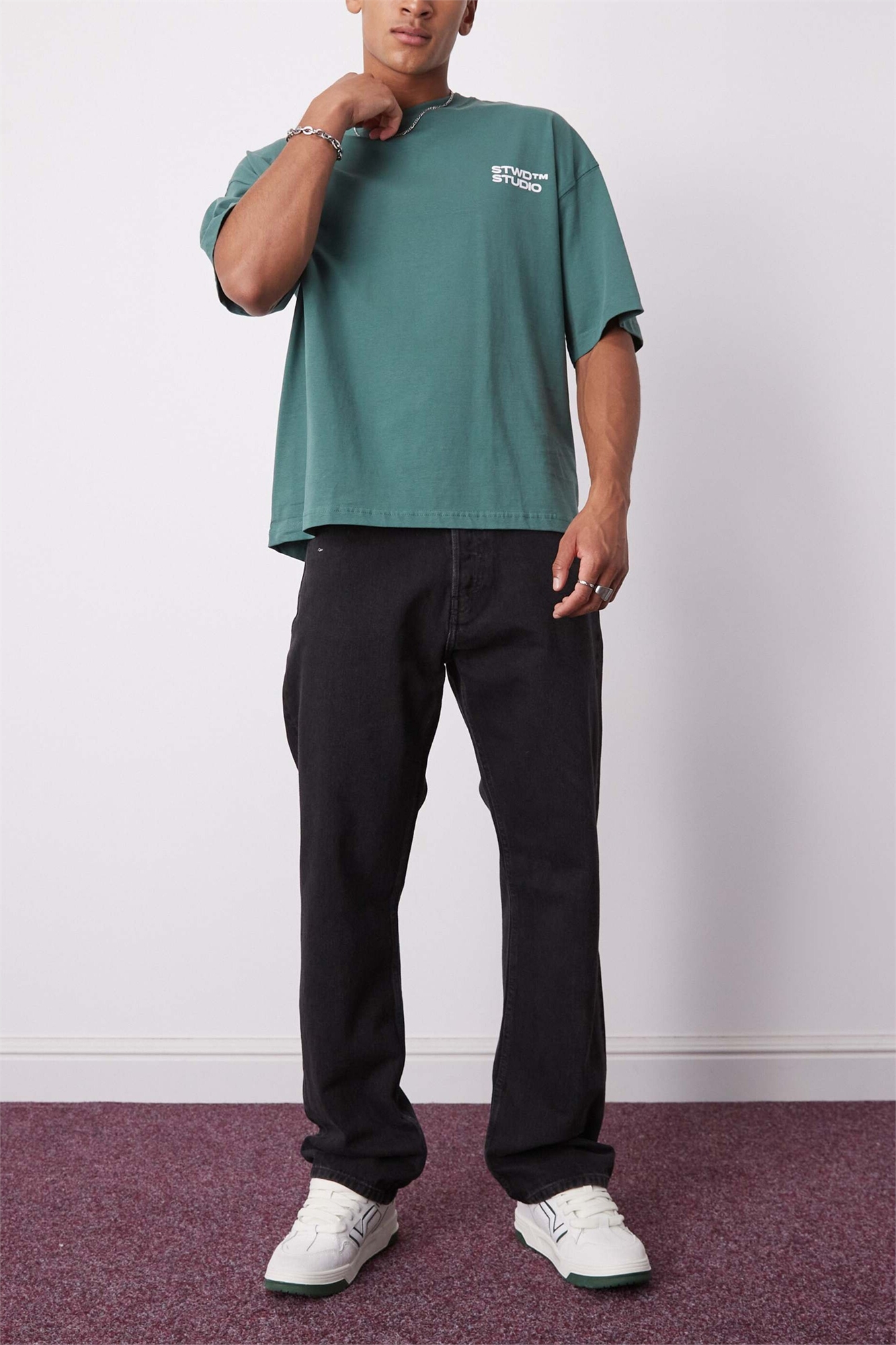 Джинсы свободного кроя с прямыми брючинами