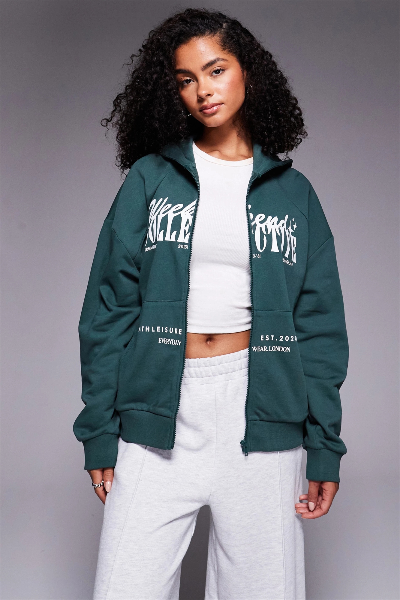 Худи с капюшоном и молнией от Weekend Collective с принтом из смешанных шрифтов