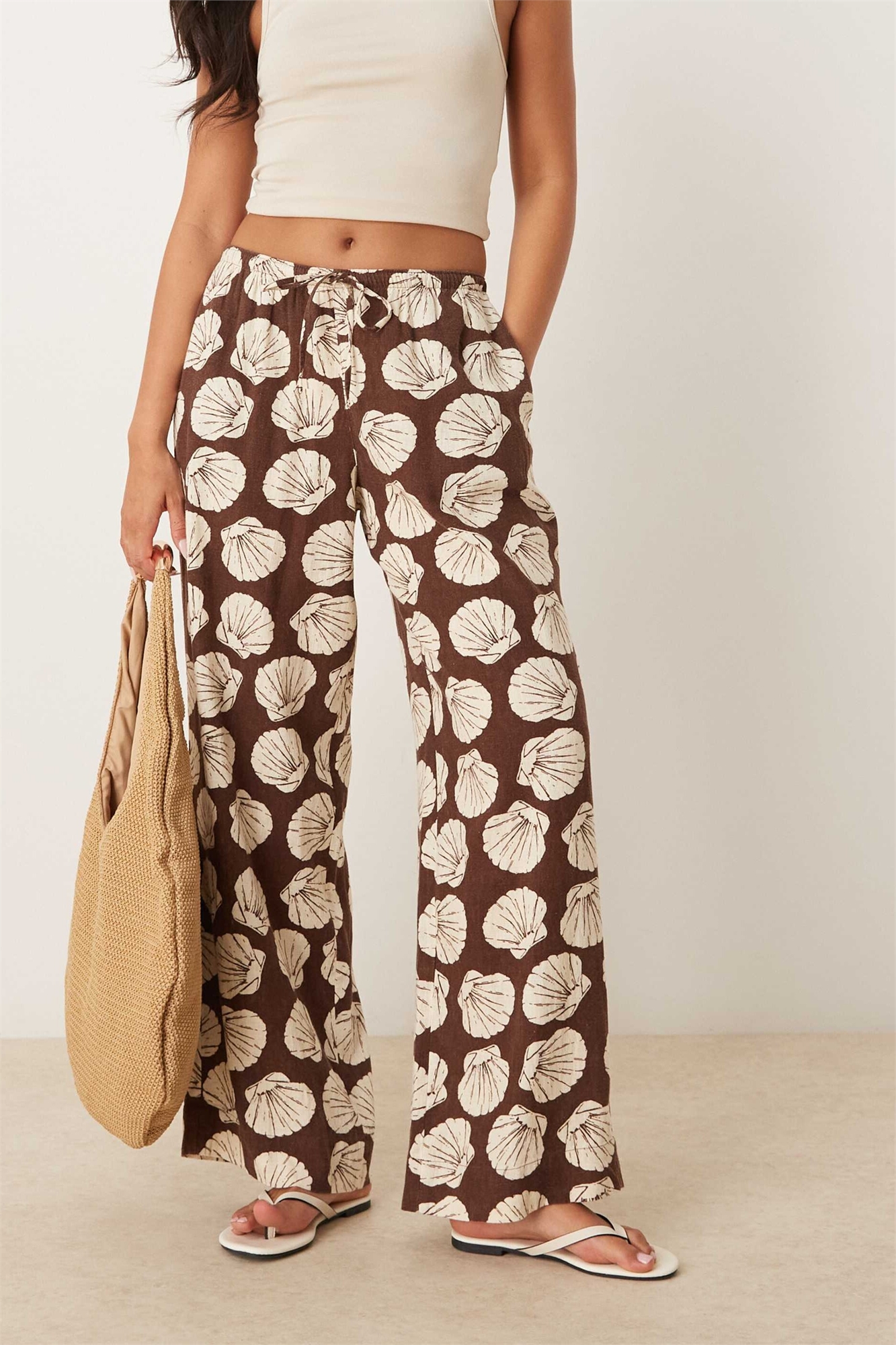 Льняные брюки с широкими брючинами, надеваемые через голову