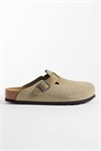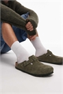 Замшевые сабо Birkenstock Boston с контрастным ремешком