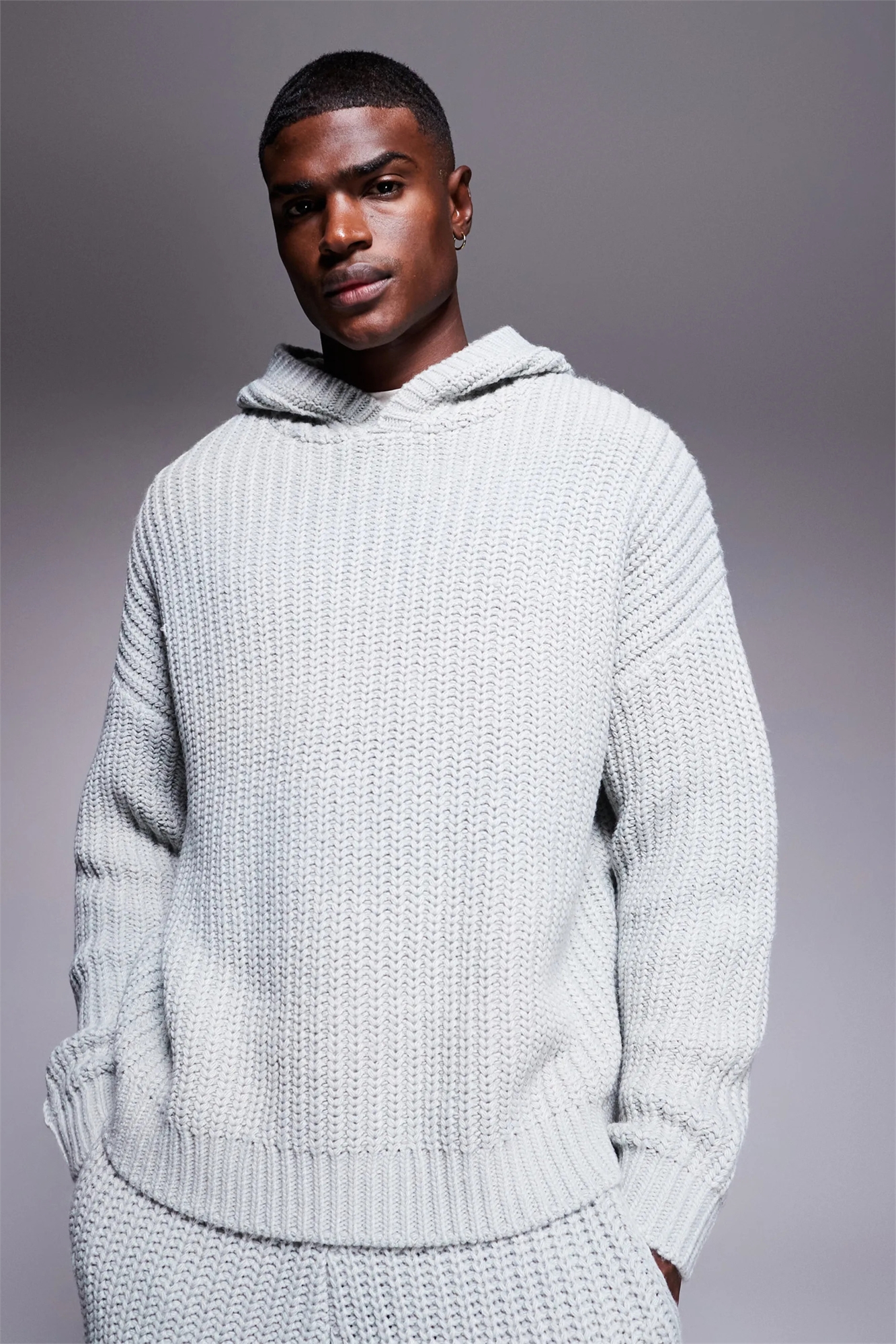 Толстовка с капюшоном из плотного трикотажа крупной вязки