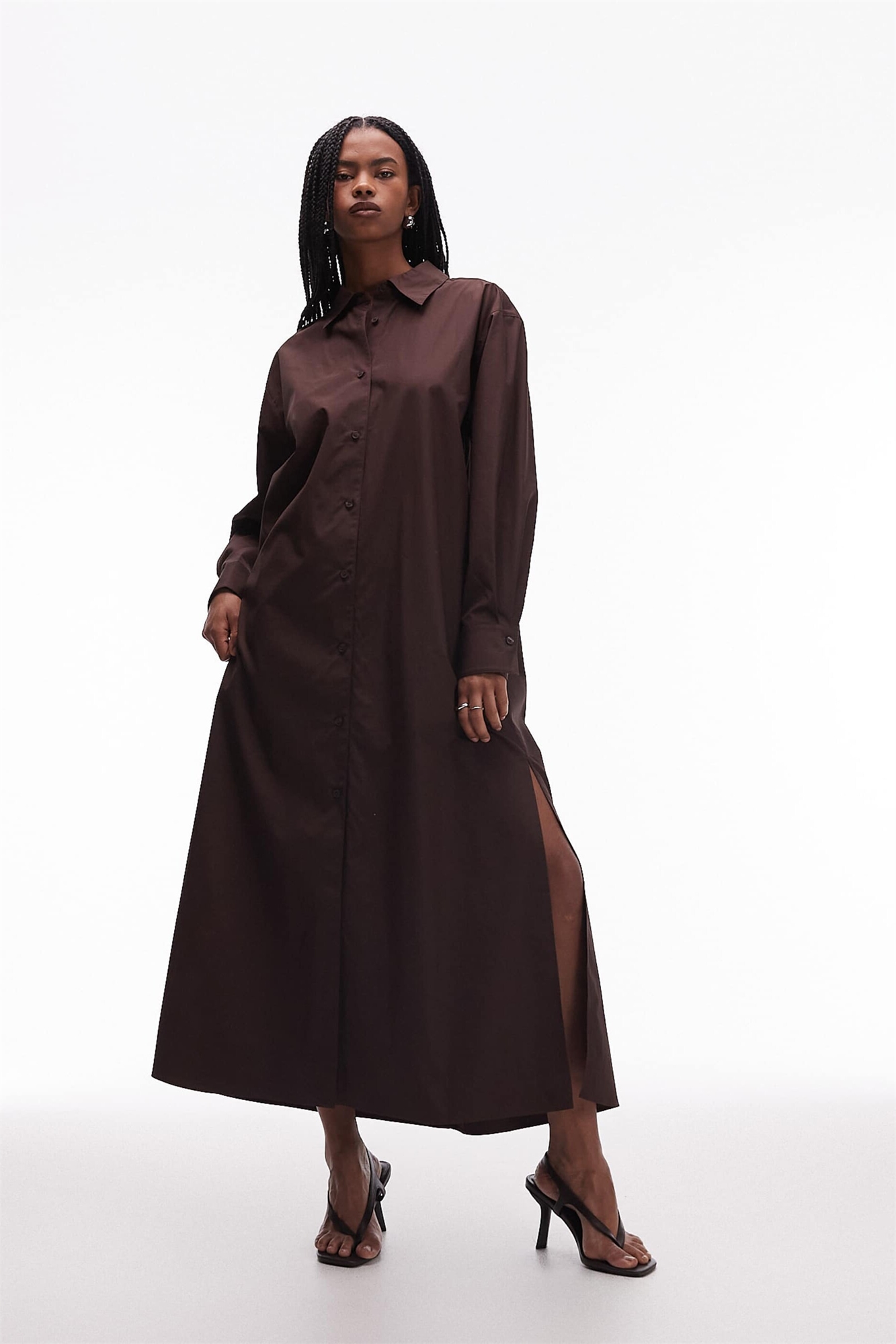 Платье-рубашка макси из чистого хлопка с боковыми разрезами