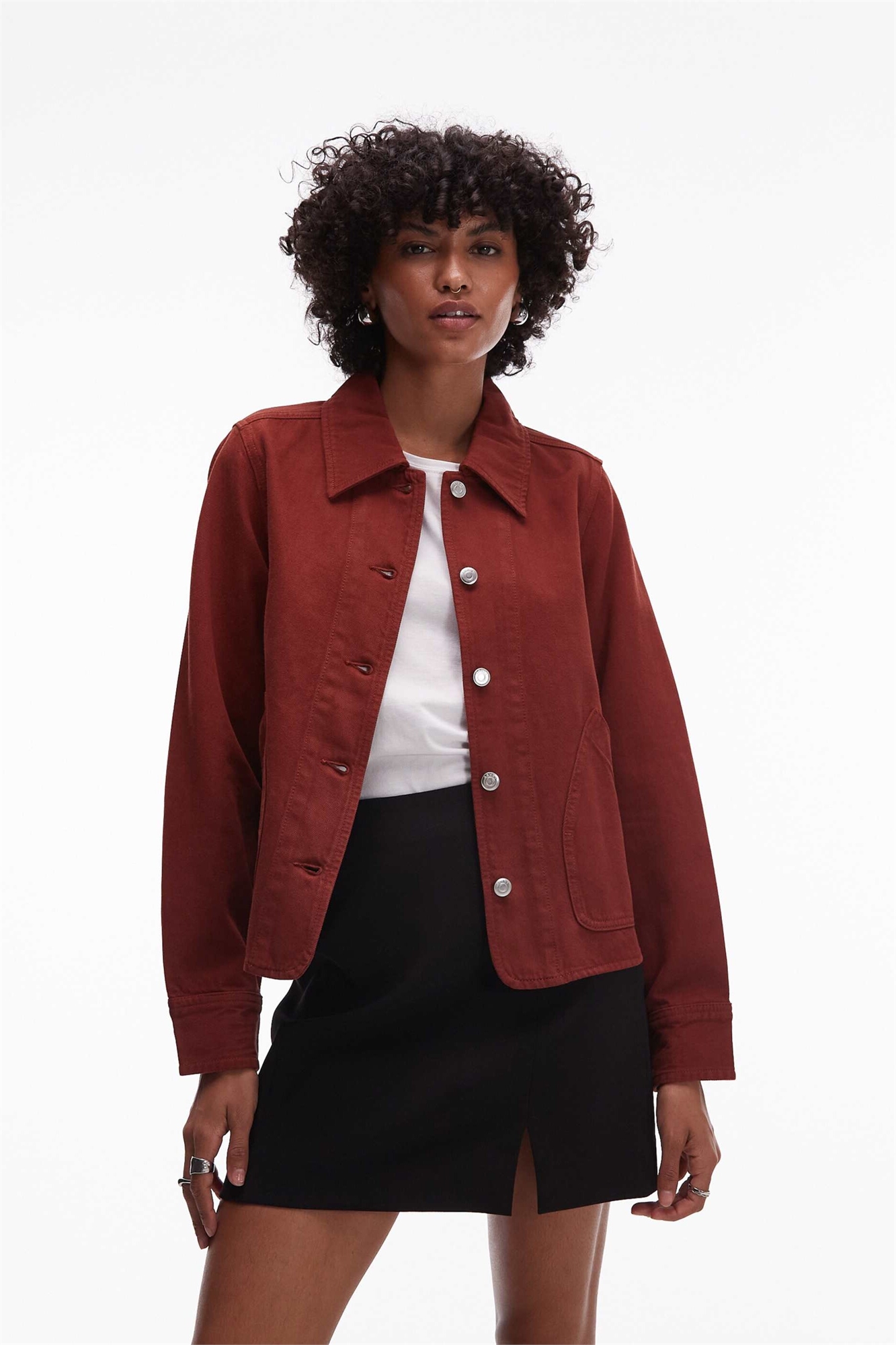 Джинсовая куртка с контрастным воротником ржаво-красного цвета