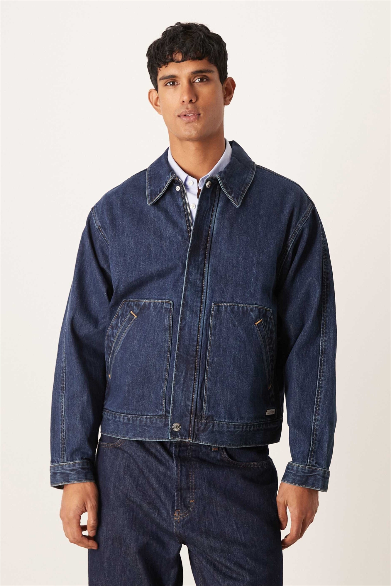 Неэластичный деним: темно-синяя стирка Основной материал: 100% хлопок.