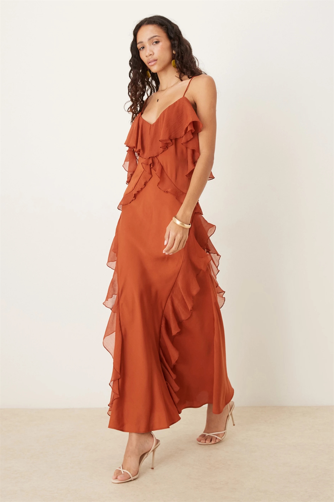Макси-платье-камизоль из промытого атласа с оборками из шифона и пышным подолом