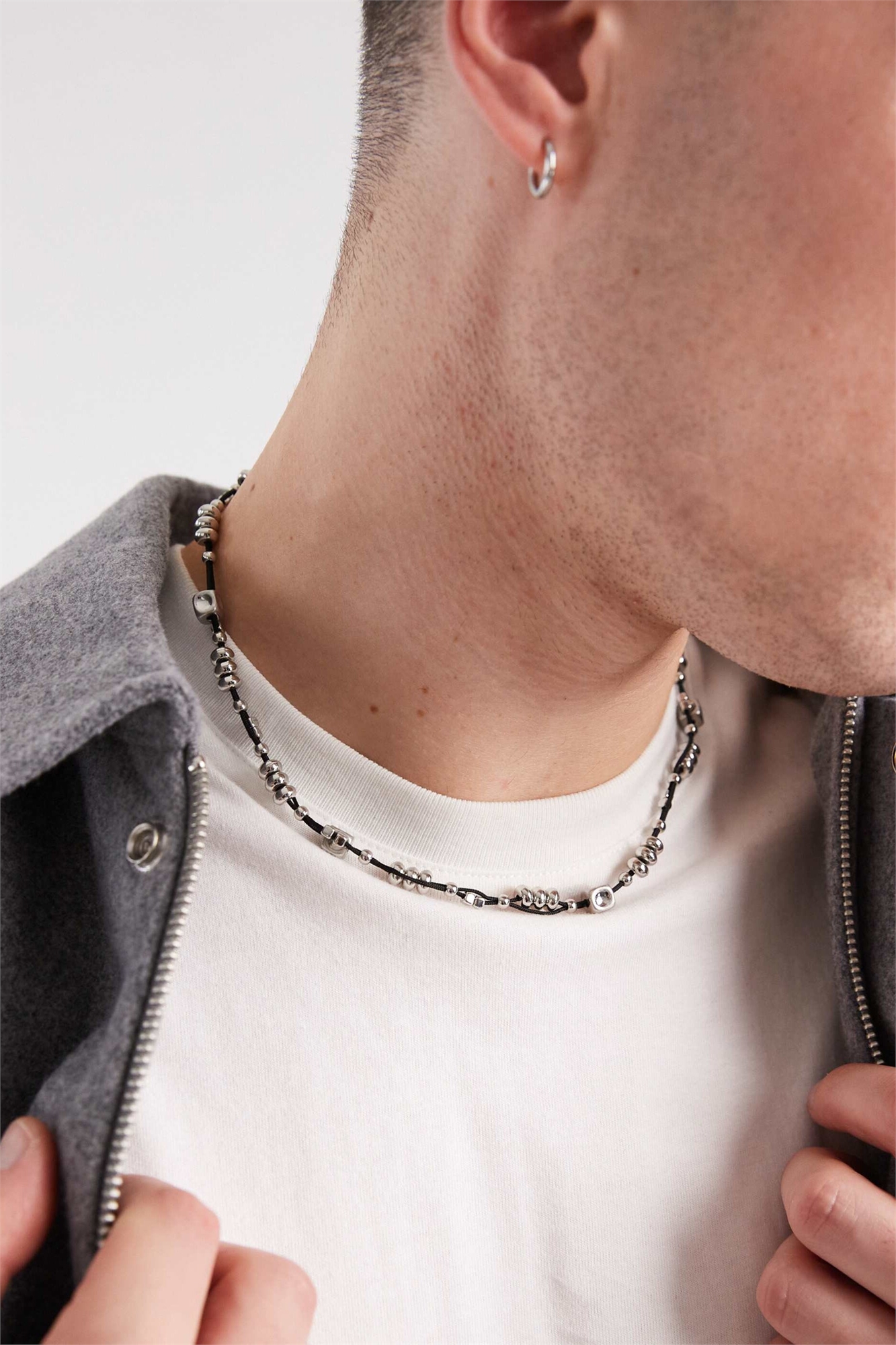 Черное ожерелье из шнурка и квадратных бусин