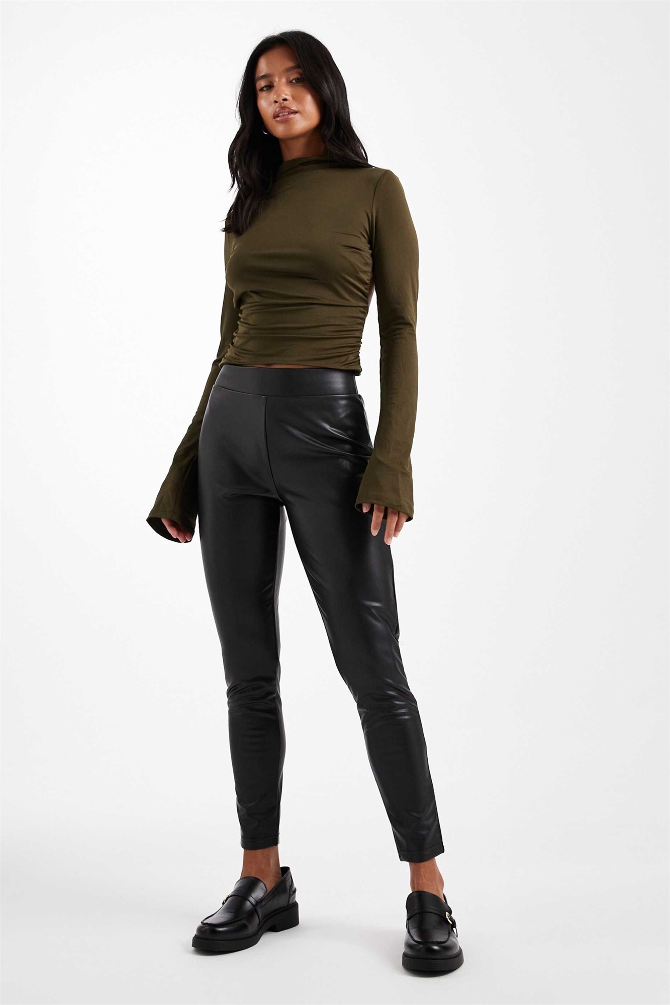 Леггинсы из искусственной кожи, надеваемые через голову