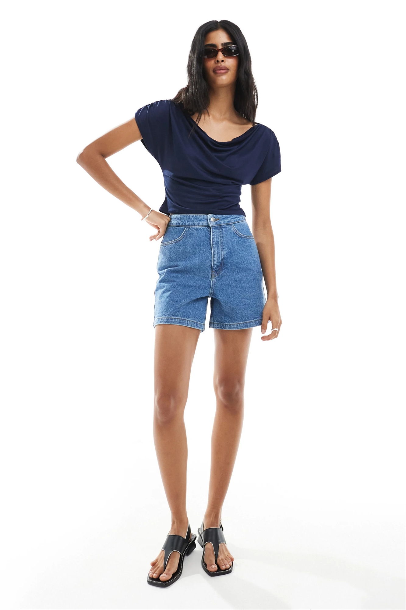 Шорты из денима с затянутой талией