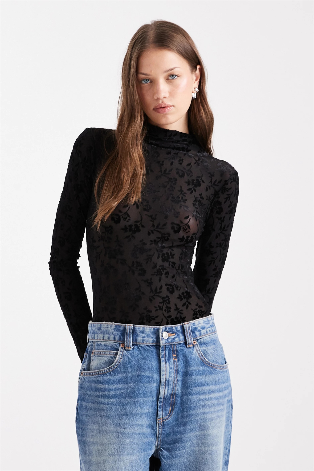 Бернаут: ткань из смешанных волокон, на поверхности которой с помощью выжигания создается узор. Основная ткань: 52% хлопок, 32% полиэстер, 16% эластан.