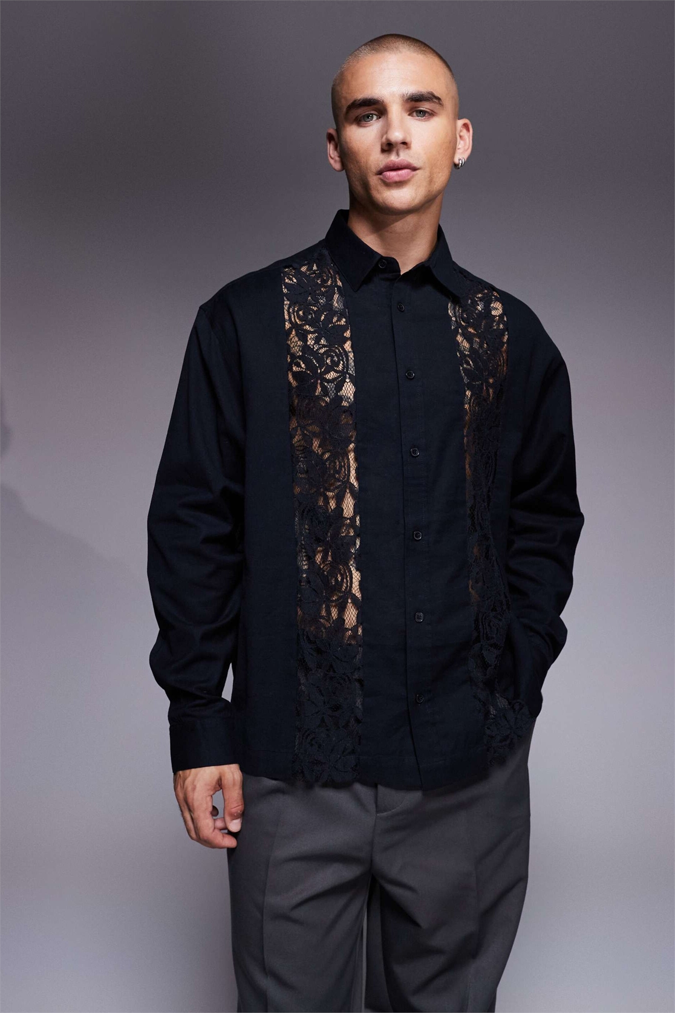 Рубашка свободного кроя с кружевной вставкой