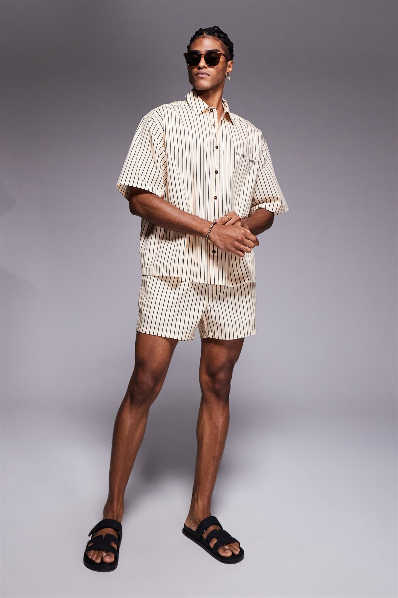 Рубашка свободного кроя в крупную полоску с принтом на груди co-ord