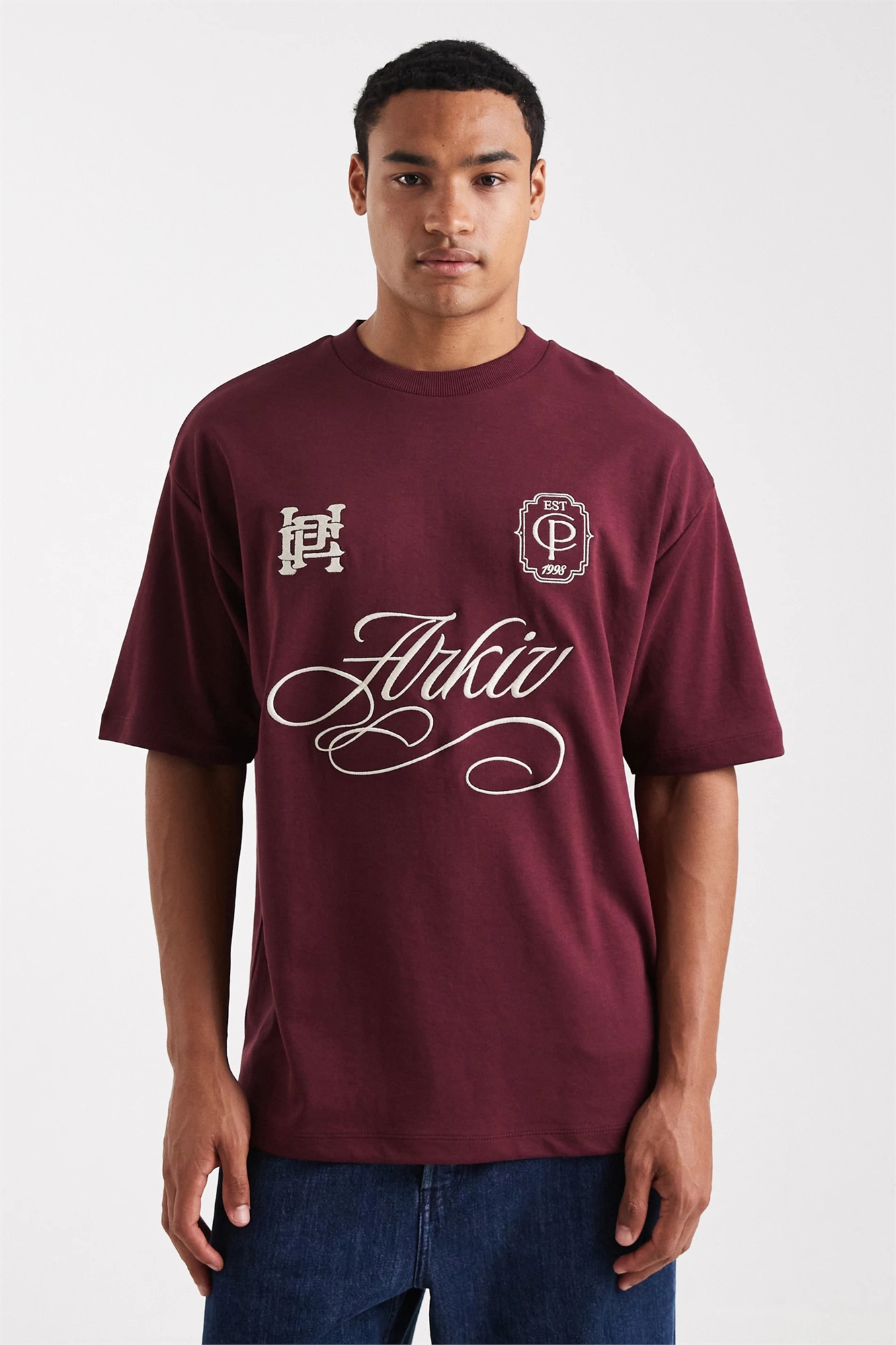 Футболка свободного кроя из плотной ткани с спортивной вышивкой