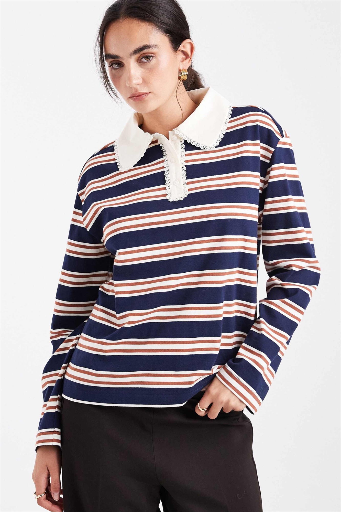 Рубашка для регби в полоску с воротником, отделанным кружевом