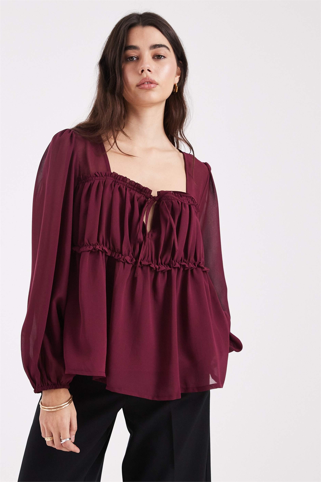 Блузка с прозрачной кокеткой и рюшами