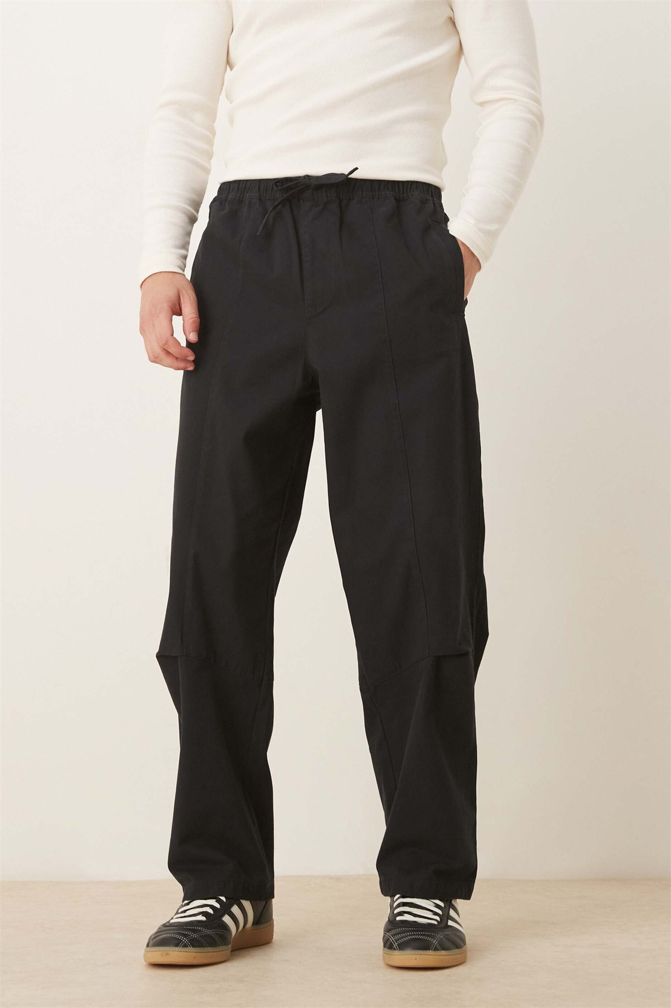 Брюки свободного кроя с зауженными штанинами, надеваемые через голову