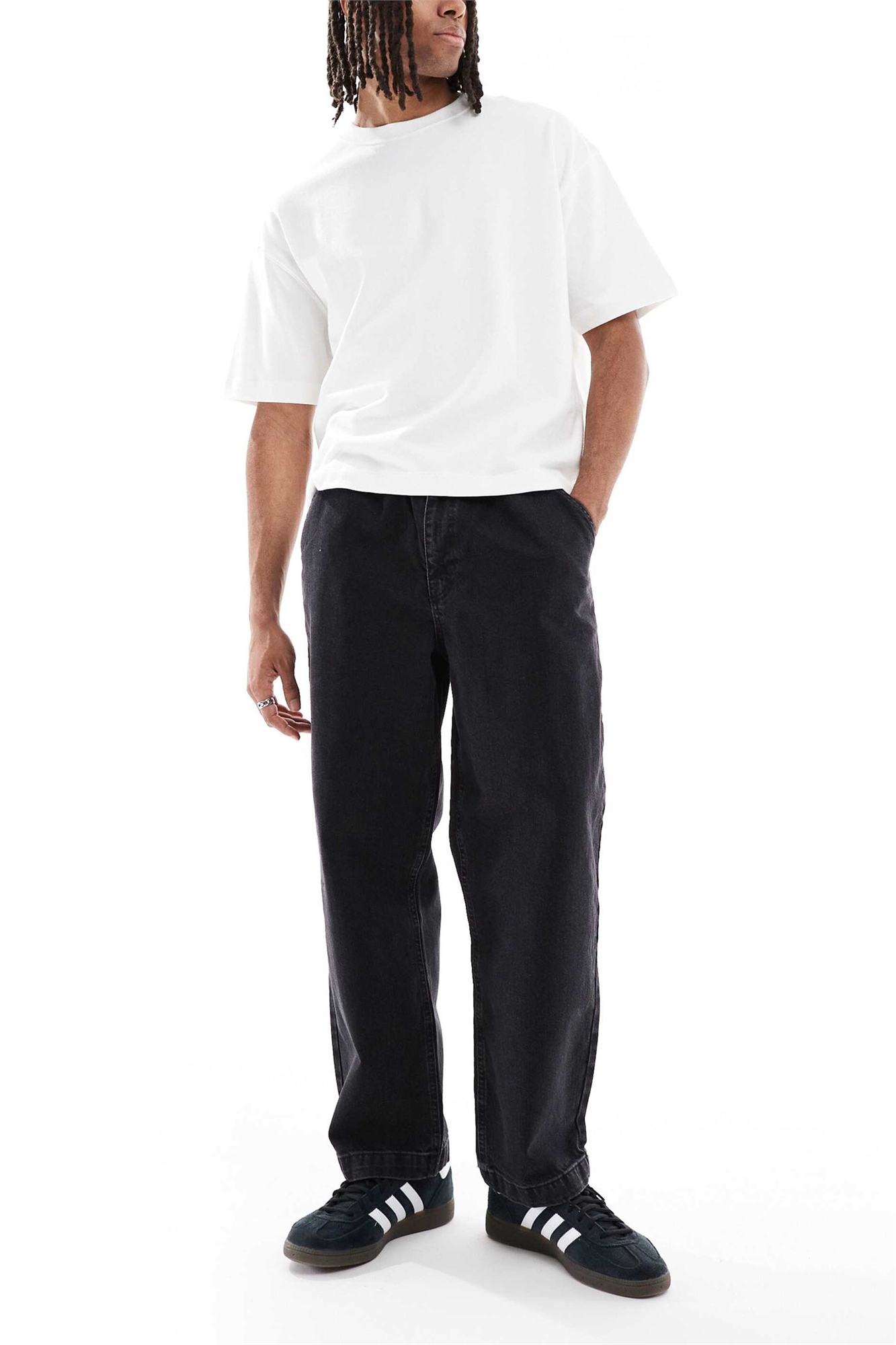 Джинсы свободного кроя с зауженными штанинами