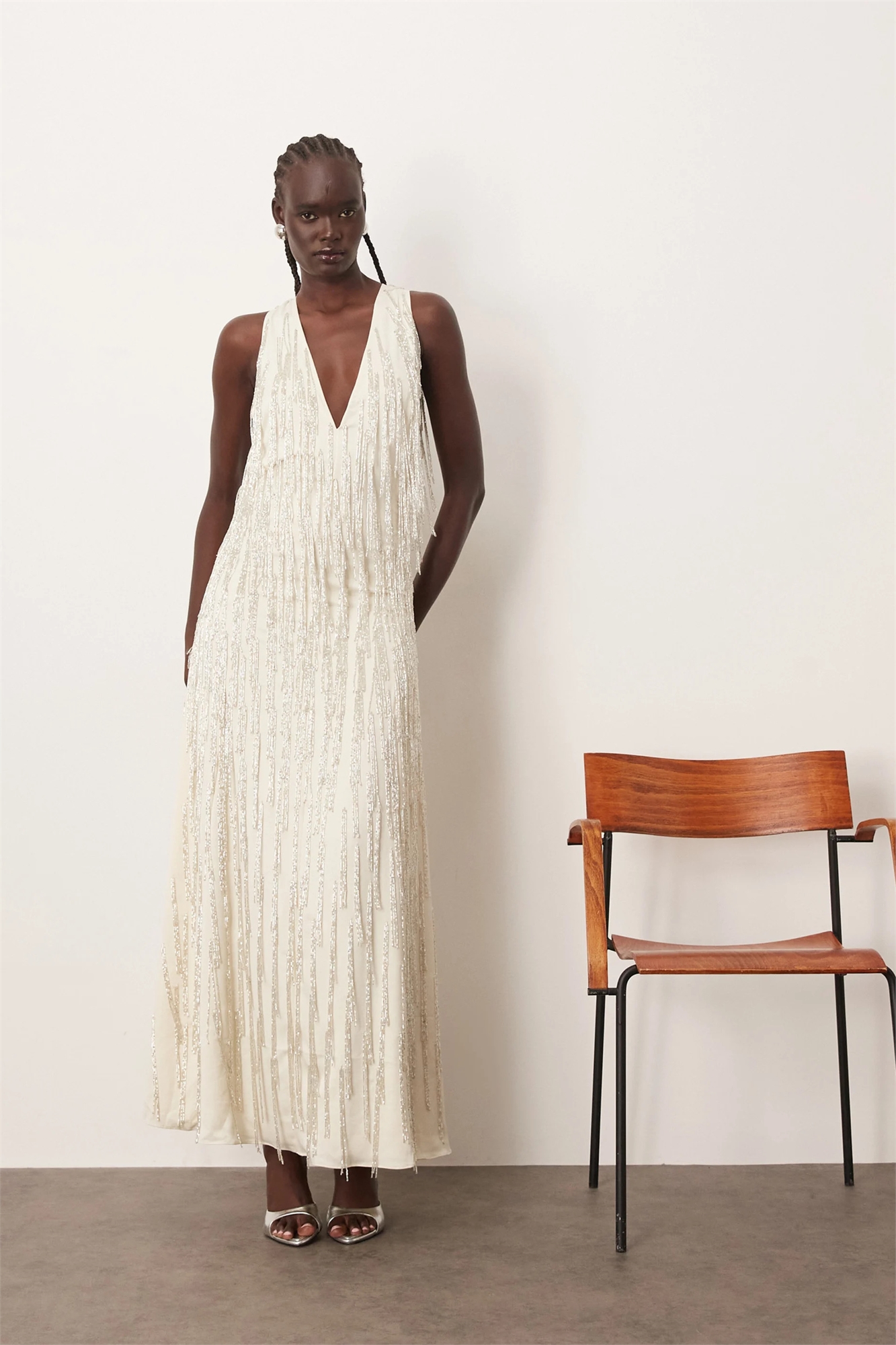 Основная часть с бисерной отделкой: 100% полиэстер; подкладка рукавов: 96% полиэстер, 4% эластан.