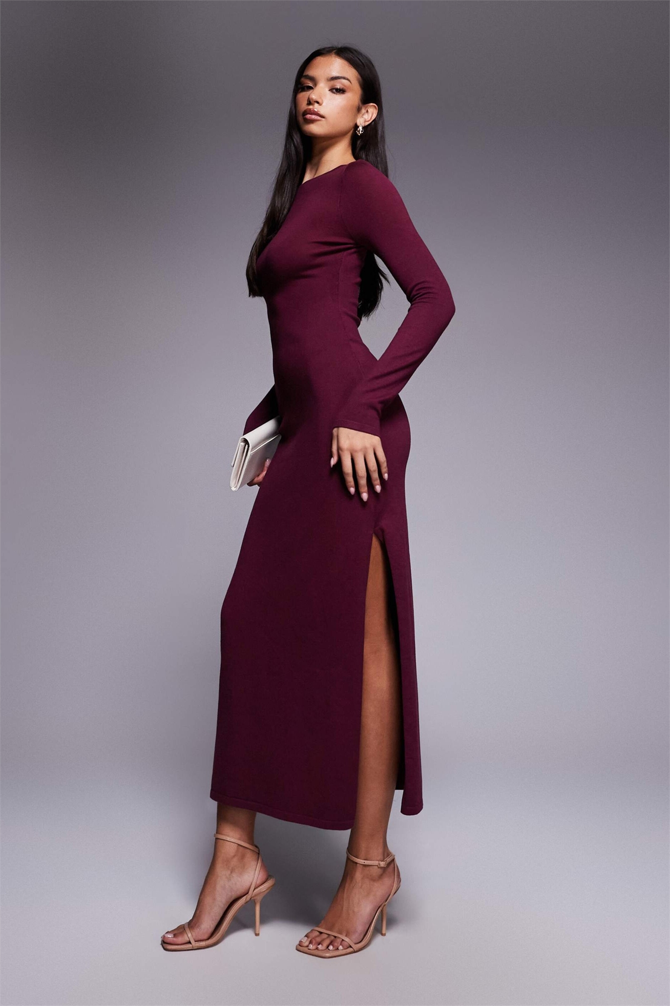 Эксклюзивное трикотажное макси-платье с косым вырезом и длинными рукавами